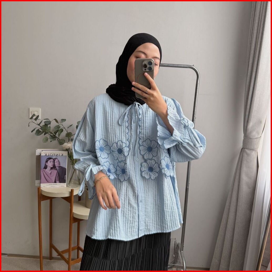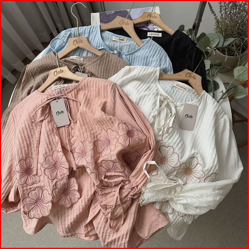 Oclo Kisada Shirt Collection Bordir Kombinasi Atasan Wanita Casual Basic Dailywear Terbaru Ocl02485