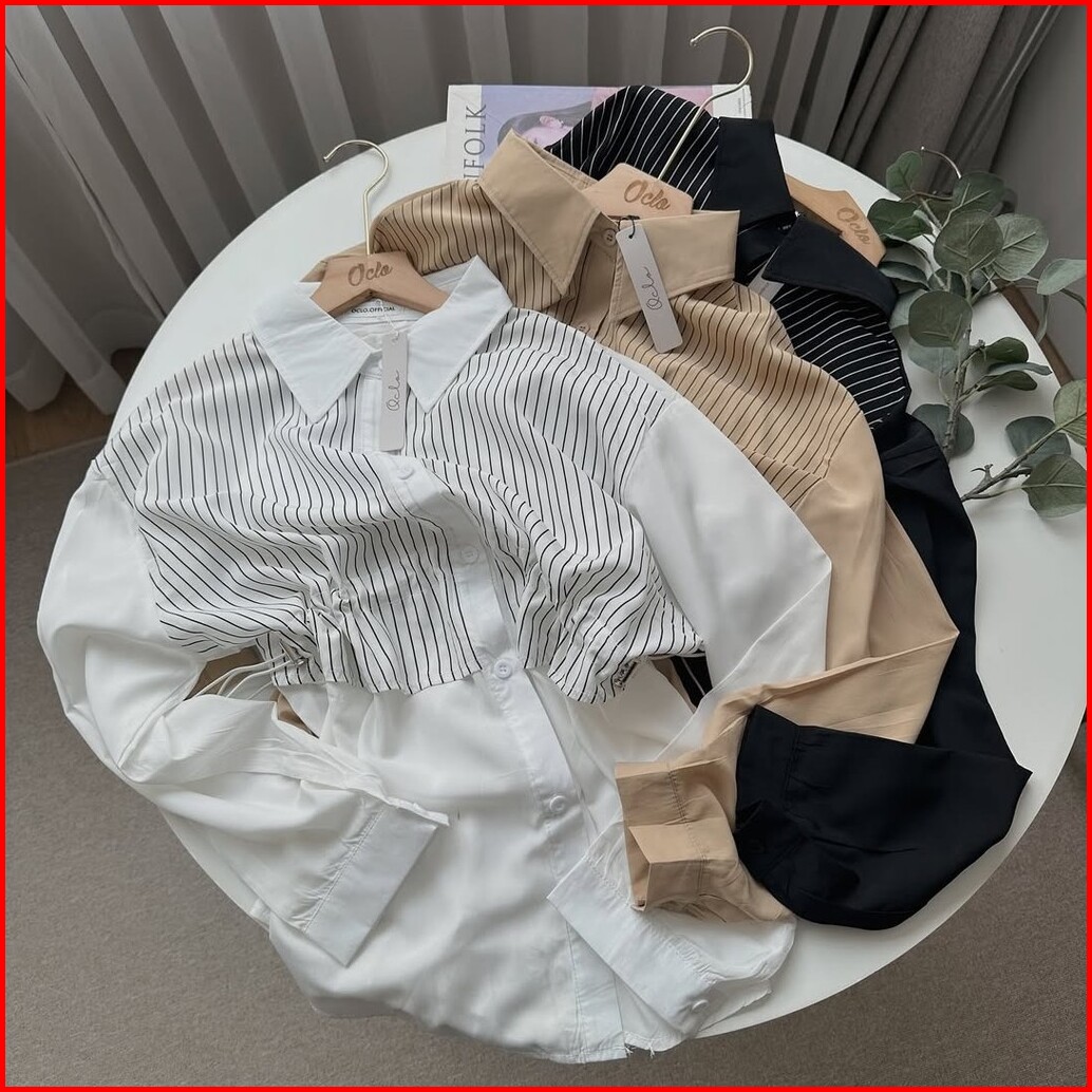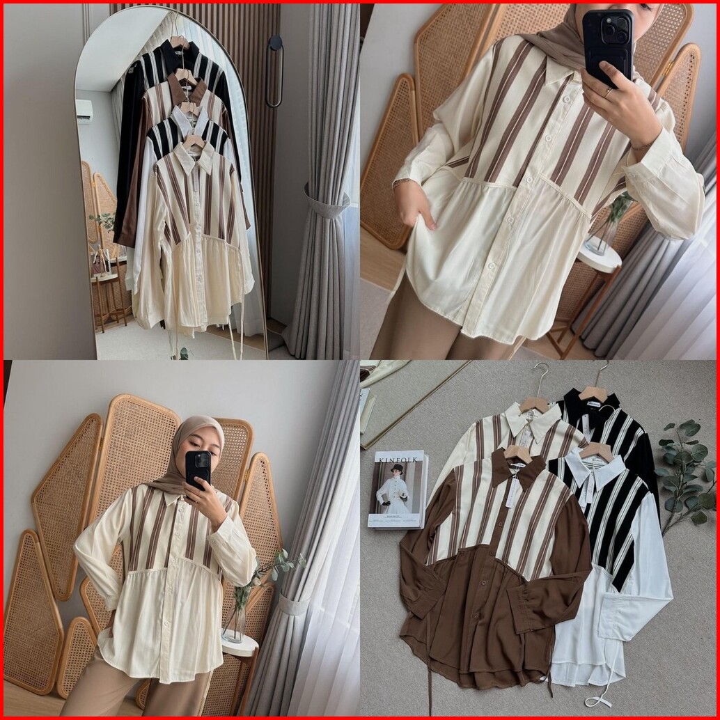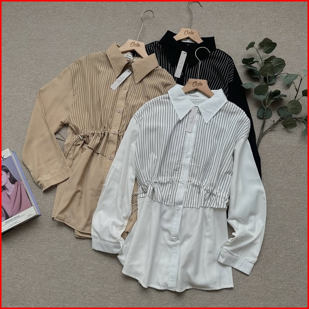 Oclo Theo Shirt Stripe Atasan Kemeja Salur Katun Wanita Lengan Panjang Ocl02494