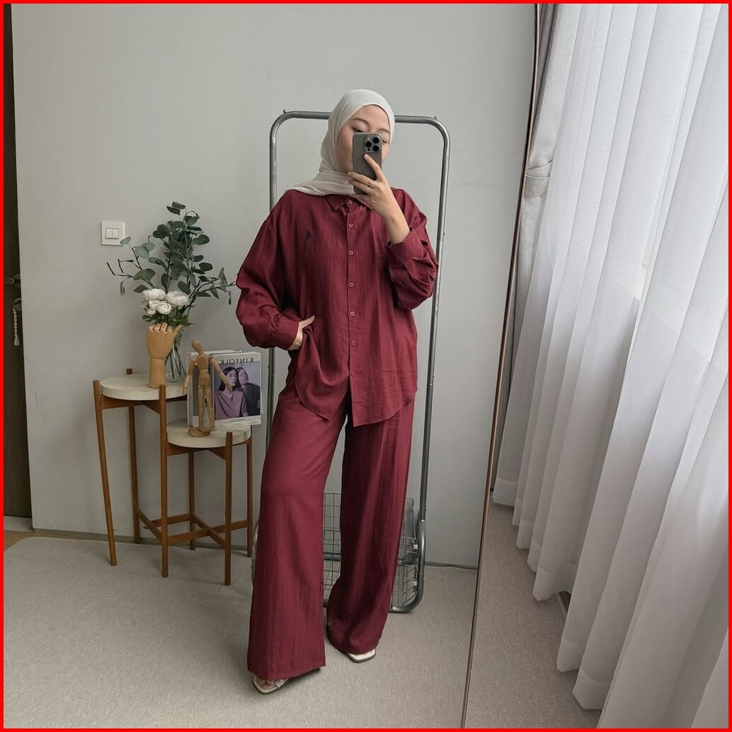 Oclo Genadi Set Setelan Pakaian Wanita Kemeja Casual Basic Premium Ocl01555