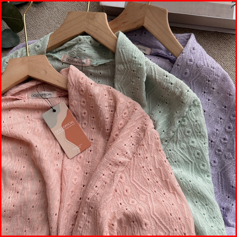 Oclo Gainara Cardi Pakaian Wanita Lace Katun Bolong Oversize Cardigan Outerwear Ocl00898