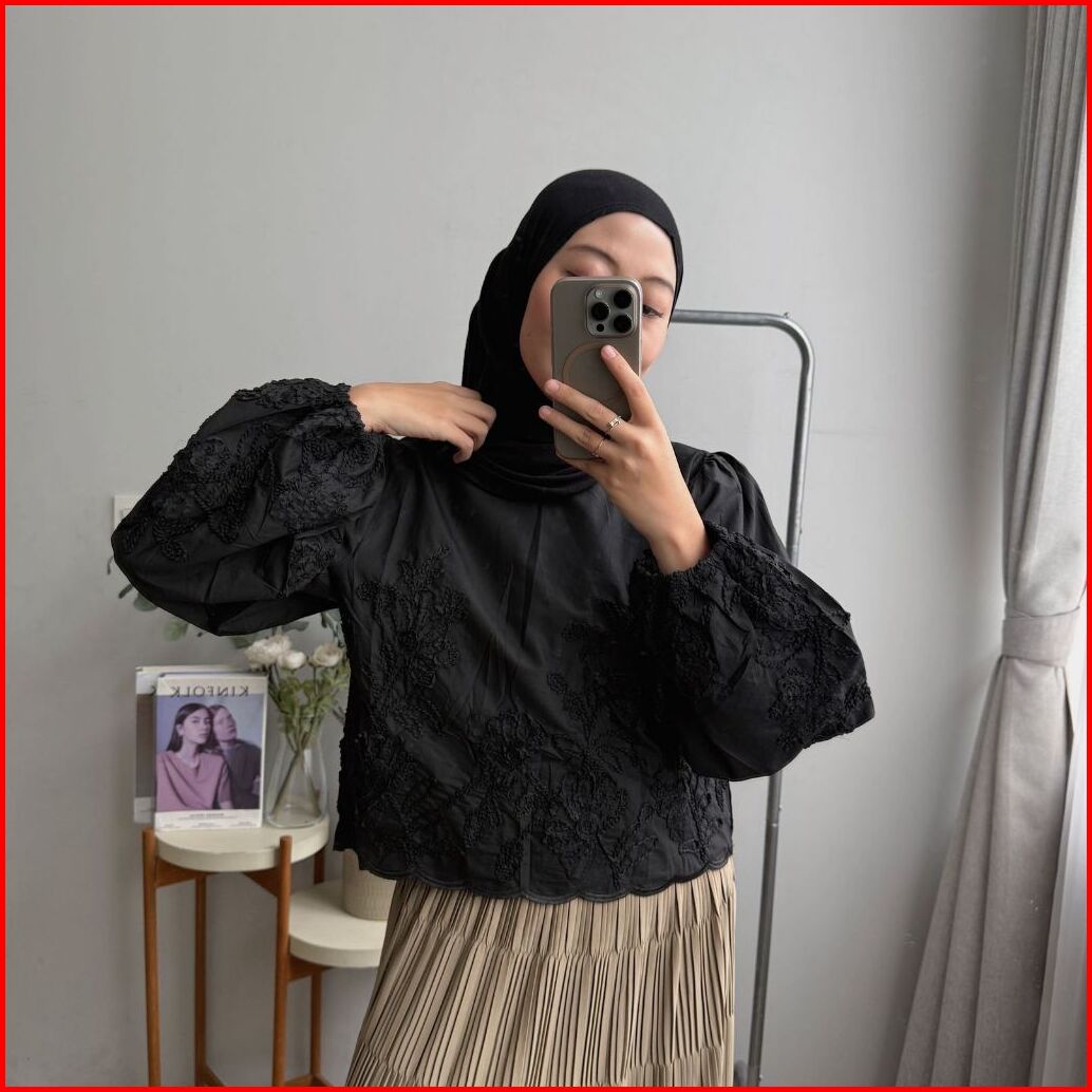 Oclo Arklya Shirt Atasan Wanita Lengan Panjang Bordir Timbul Basic Casual Dailywear Ocl01579