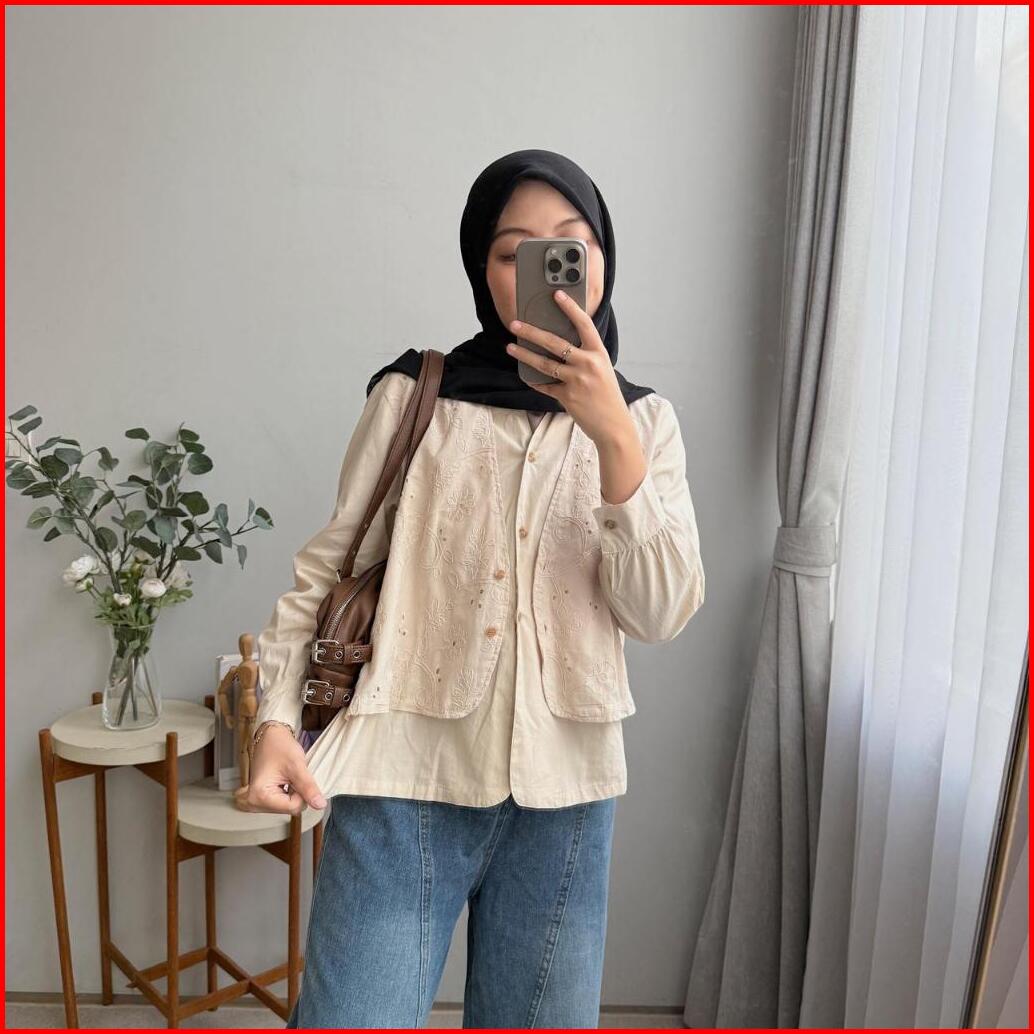 Oclo Ankita Shirt Vest Atasan Wanita Kemeja Rompi Katbol Bunga Casual Basic Dailywear Ocl02245