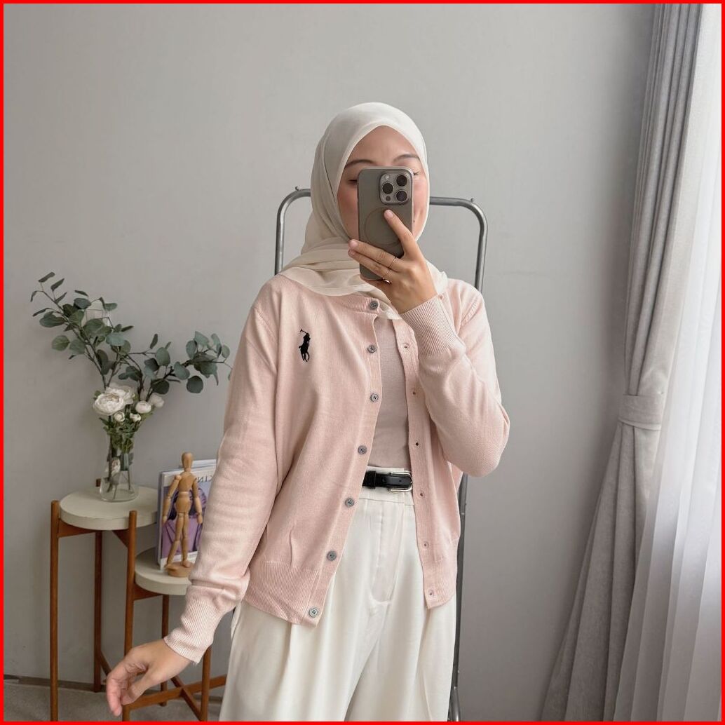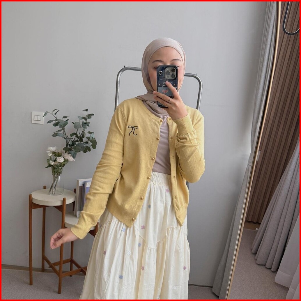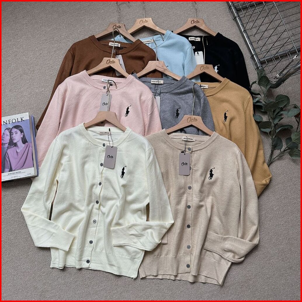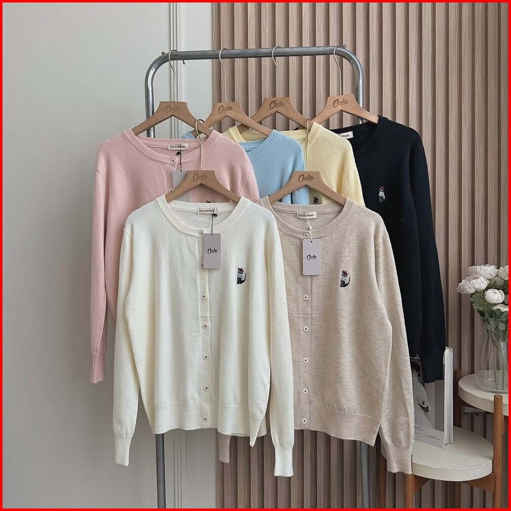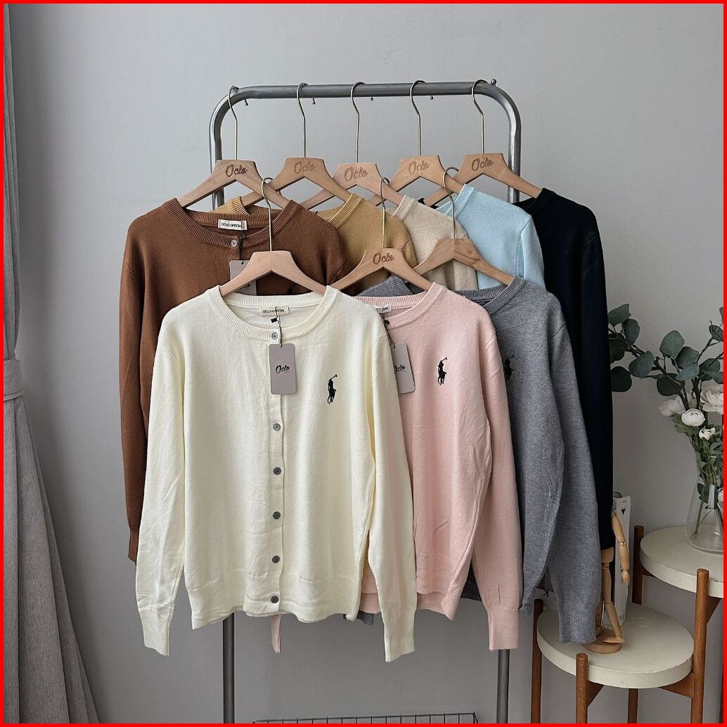 Oclo Cardi Polo Knit Baju Atasan Wanita Cardigan Rajut Bordir Pita Lengan Panjang Casual Korean Style Ootd Terbaru Ocl02
