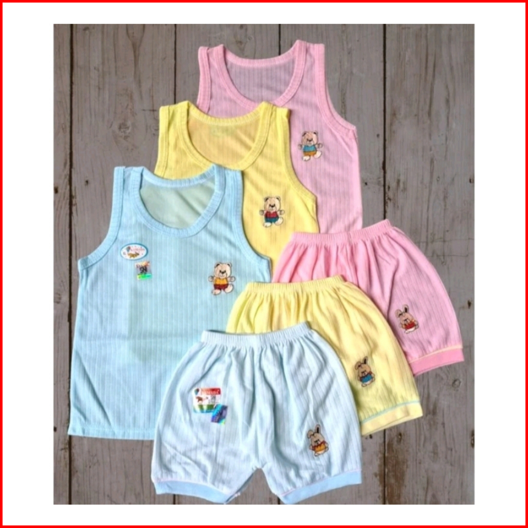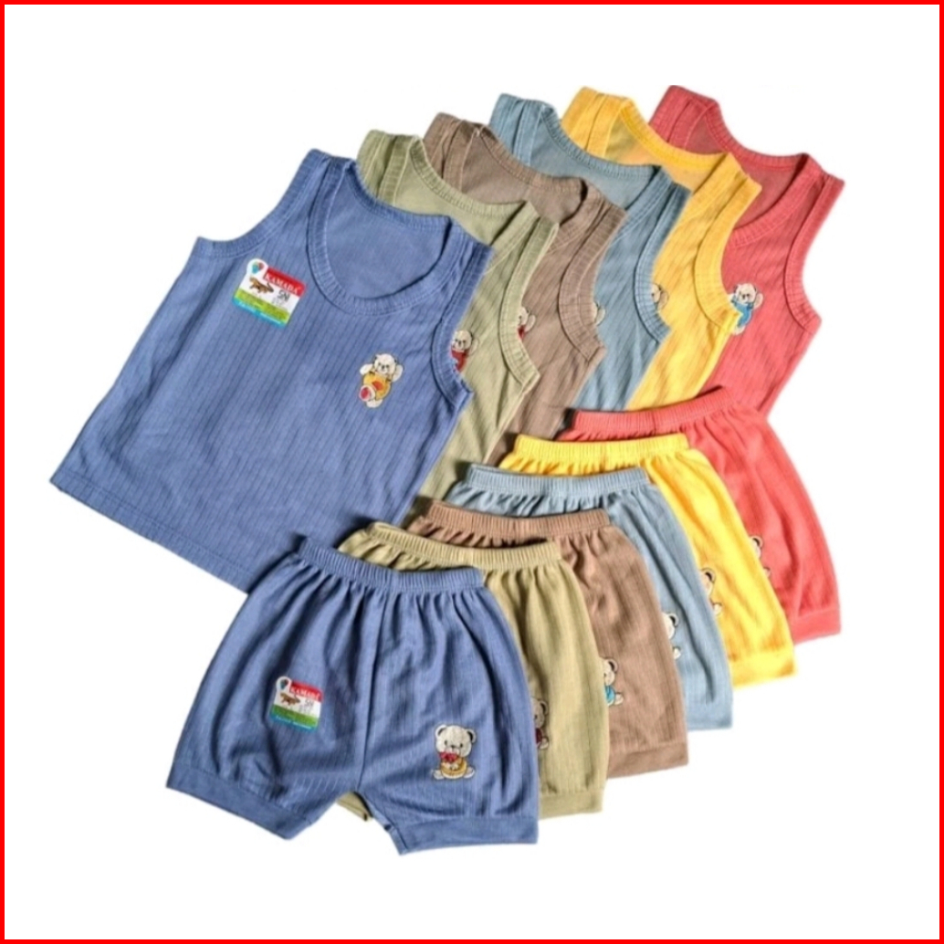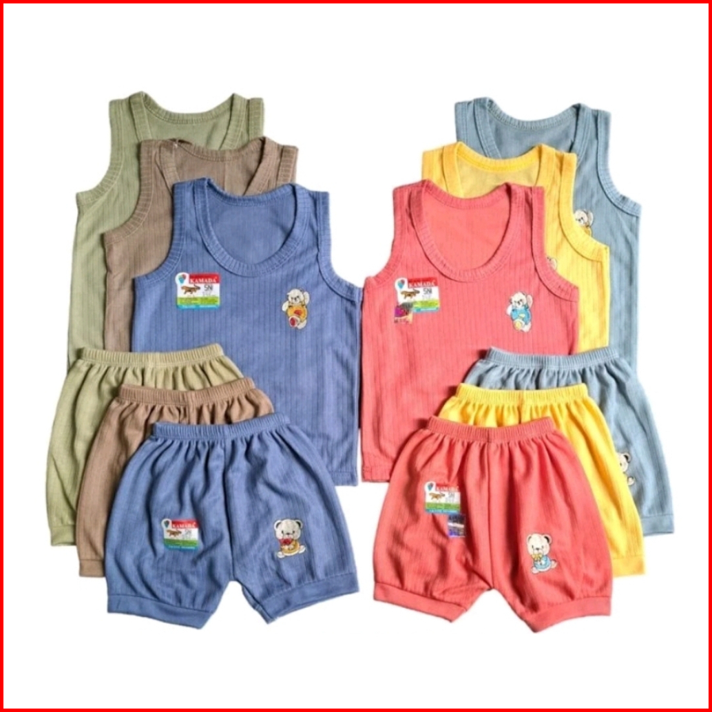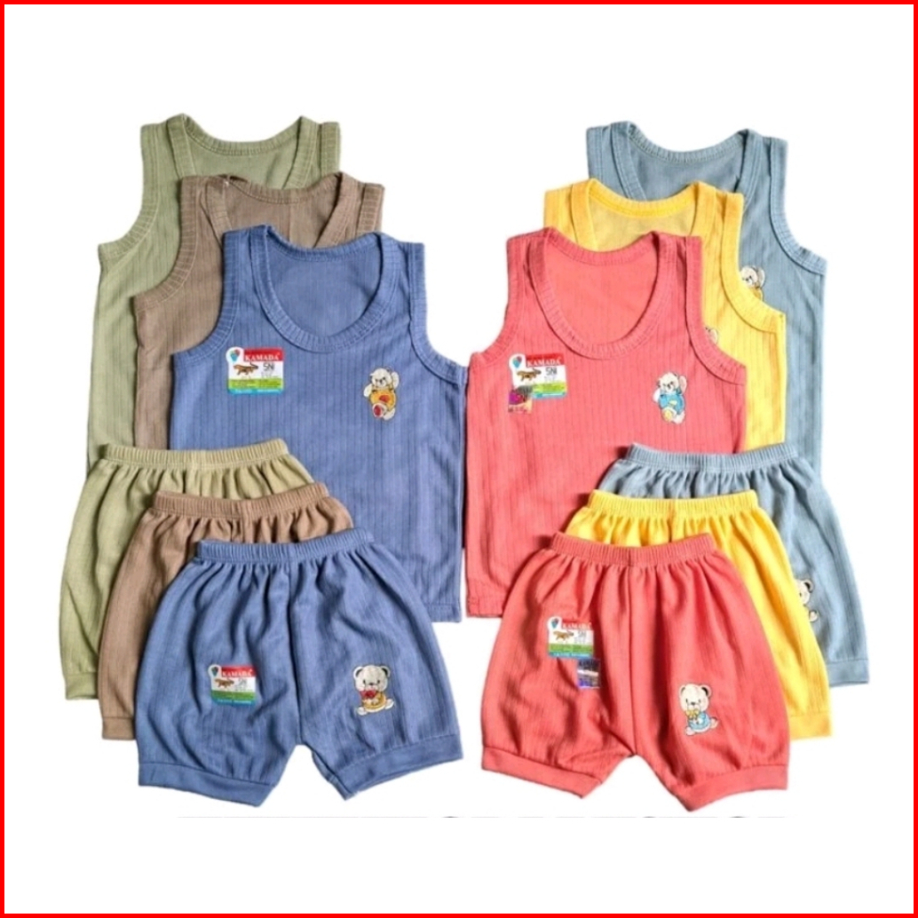 Kamada 6pc Setelan Lengan Kutung Celana Pendek Singlet Bayi Celana S M L Xl 0-24bulan