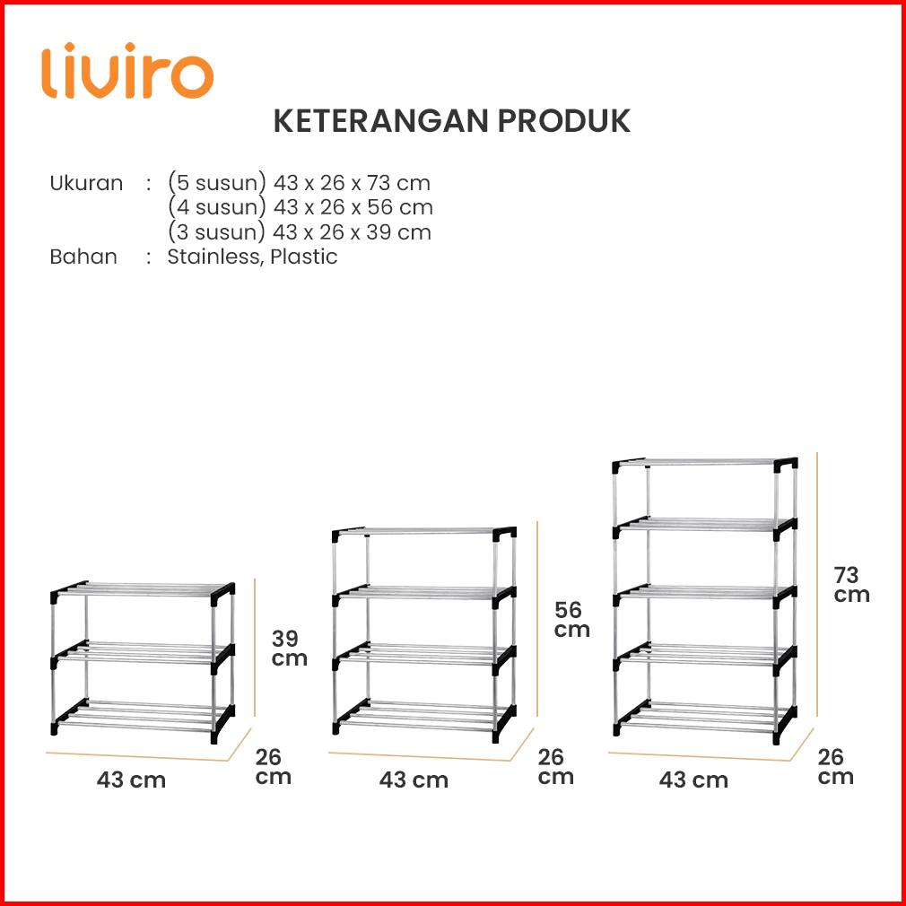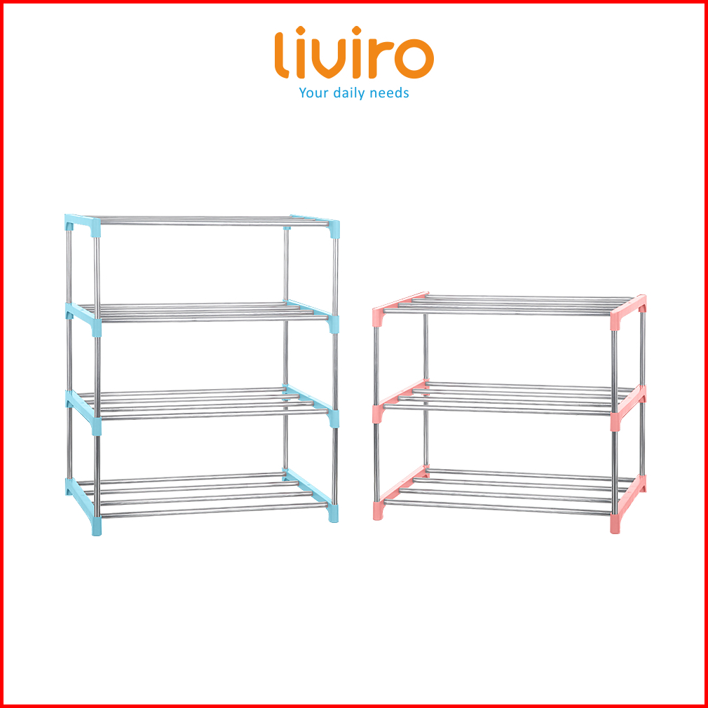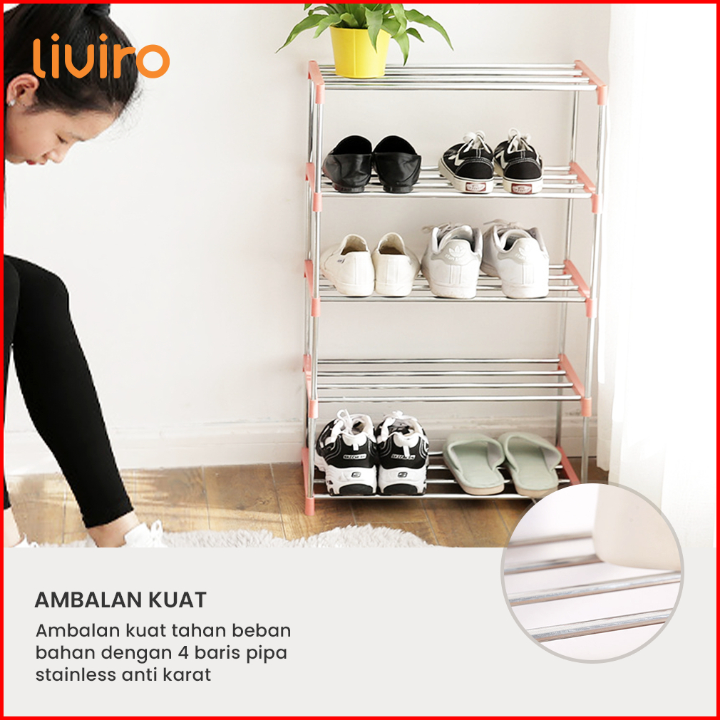 Liviro Rak Sepatu Stainless Steel Premium 4 Susun Minimalis Serbaguna Anti Karat Dan Tahan Lama