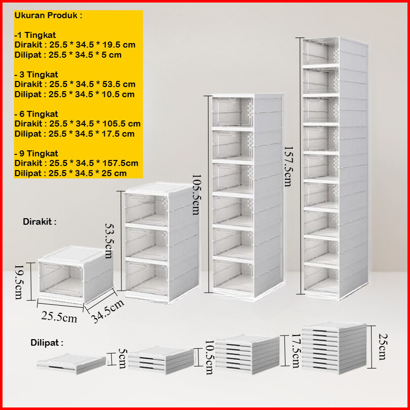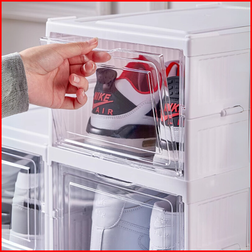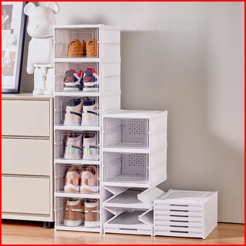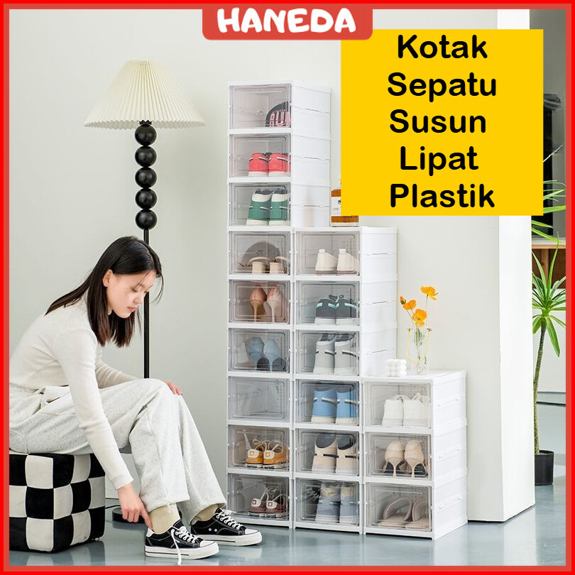 Haneda Rak Sepatu Lipat Lemari Sepatu Kotak Sepatu Susun Box Display Maina Transparan Bebas Debu