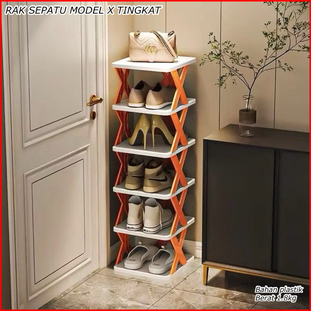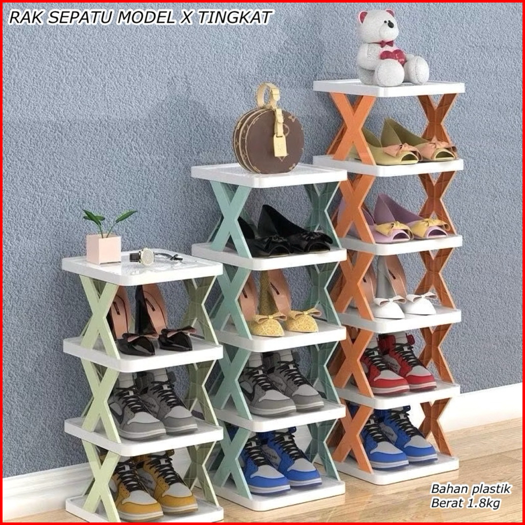 Rak Sepatu Model X 8 - 5 - 4 Tingkat Rak Sepatu Plastik Rak Sendal Serbaguna Tingkat Minimalis