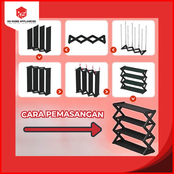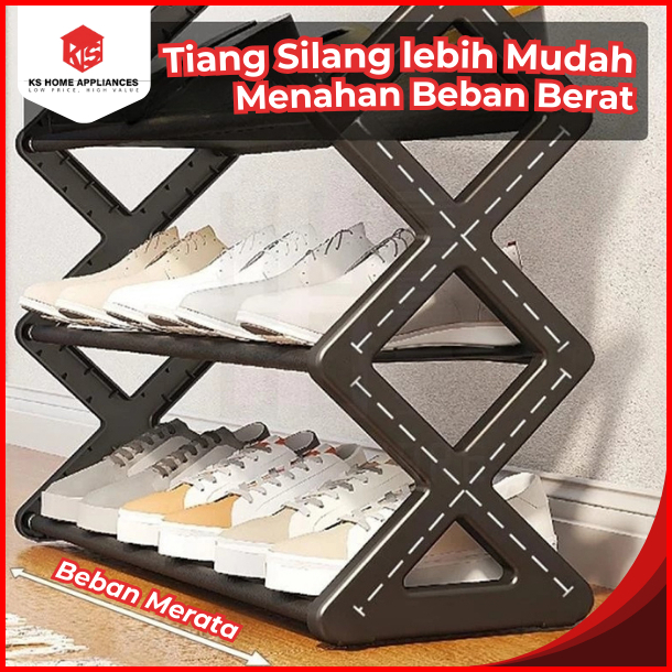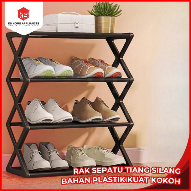 Ks Rak Sepatu Serbaguna 4 Susun Model X Organizer Sepatu Sandal Modern