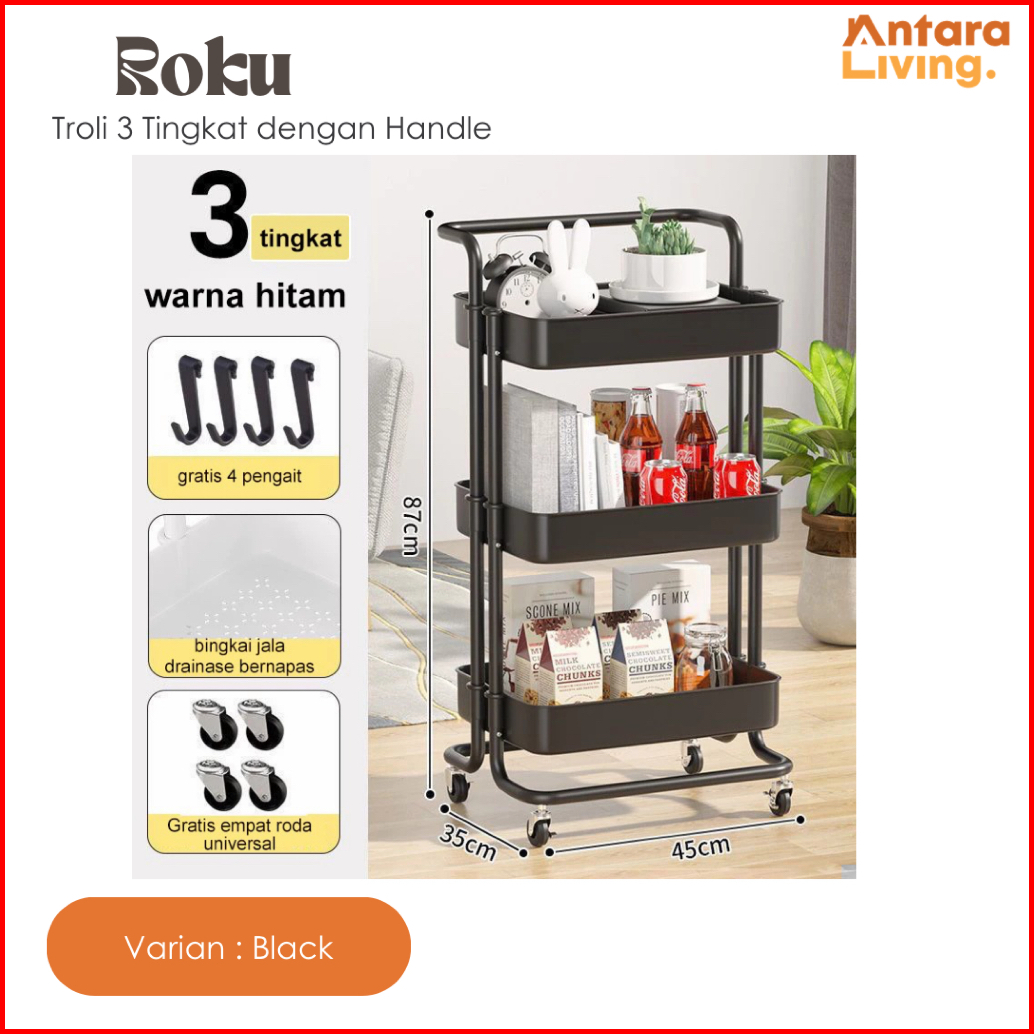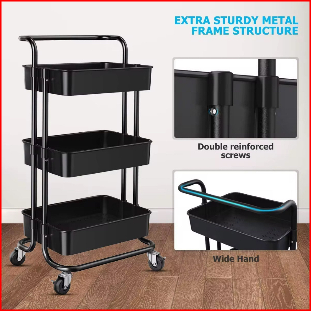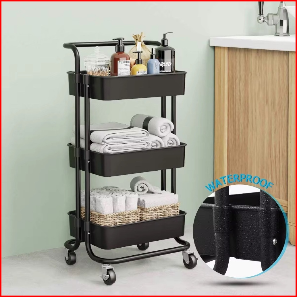 Rak Troli Susun 3 Tingkat Serbaguna Dengan Handle Dan Roda