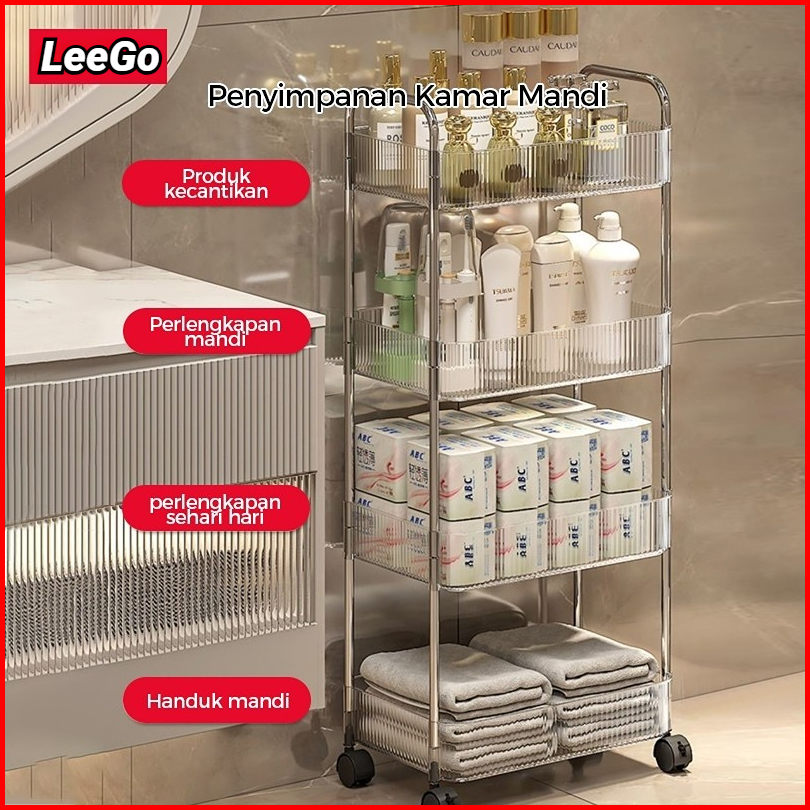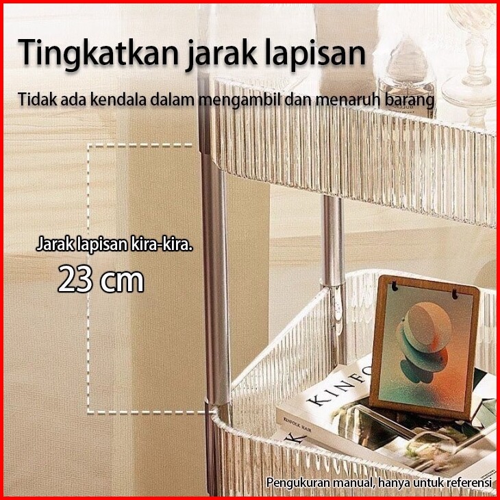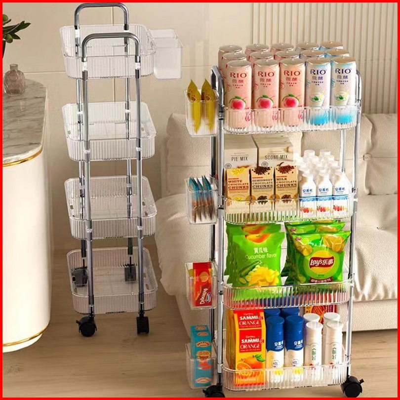 Rak Troli Susun 4 Tingkat Stainless Steel Akrilik Transparan - Serbaguna Kamar Mandi Dapur Salon Rak Kosmetik Dengan Rod