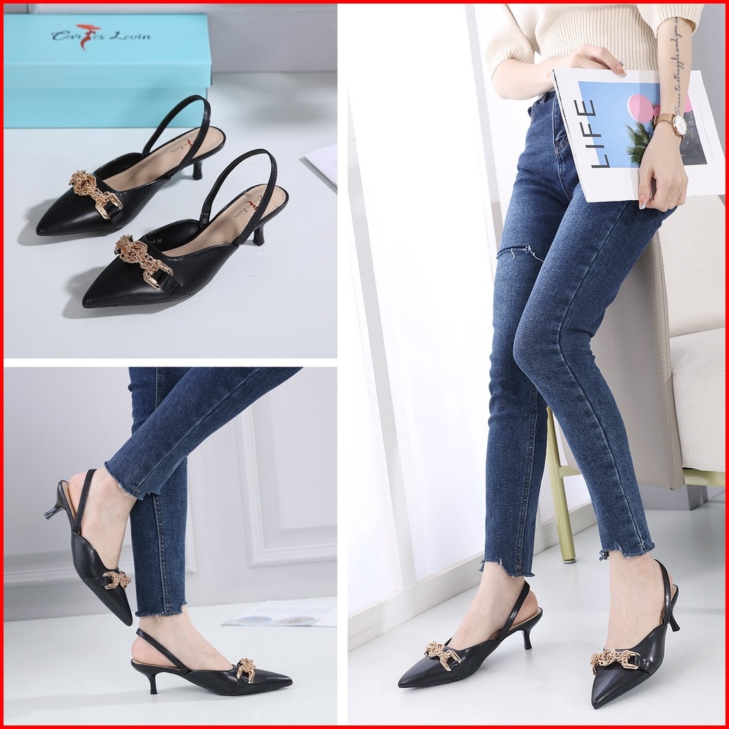 Carleslevin Cl 306-5 Sepatu Wanita Hak Chunky Heels Slingback Import