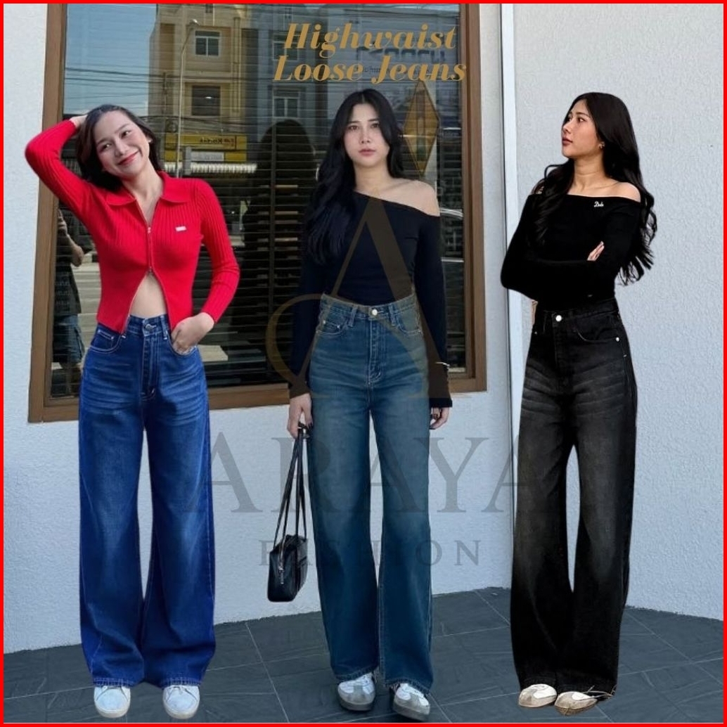Celana Highwaist Loose Jeans Premium Semi Retro Celana Panjang Loose Baggy Jeans Korean Style