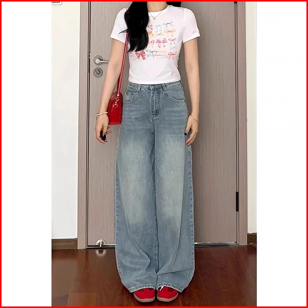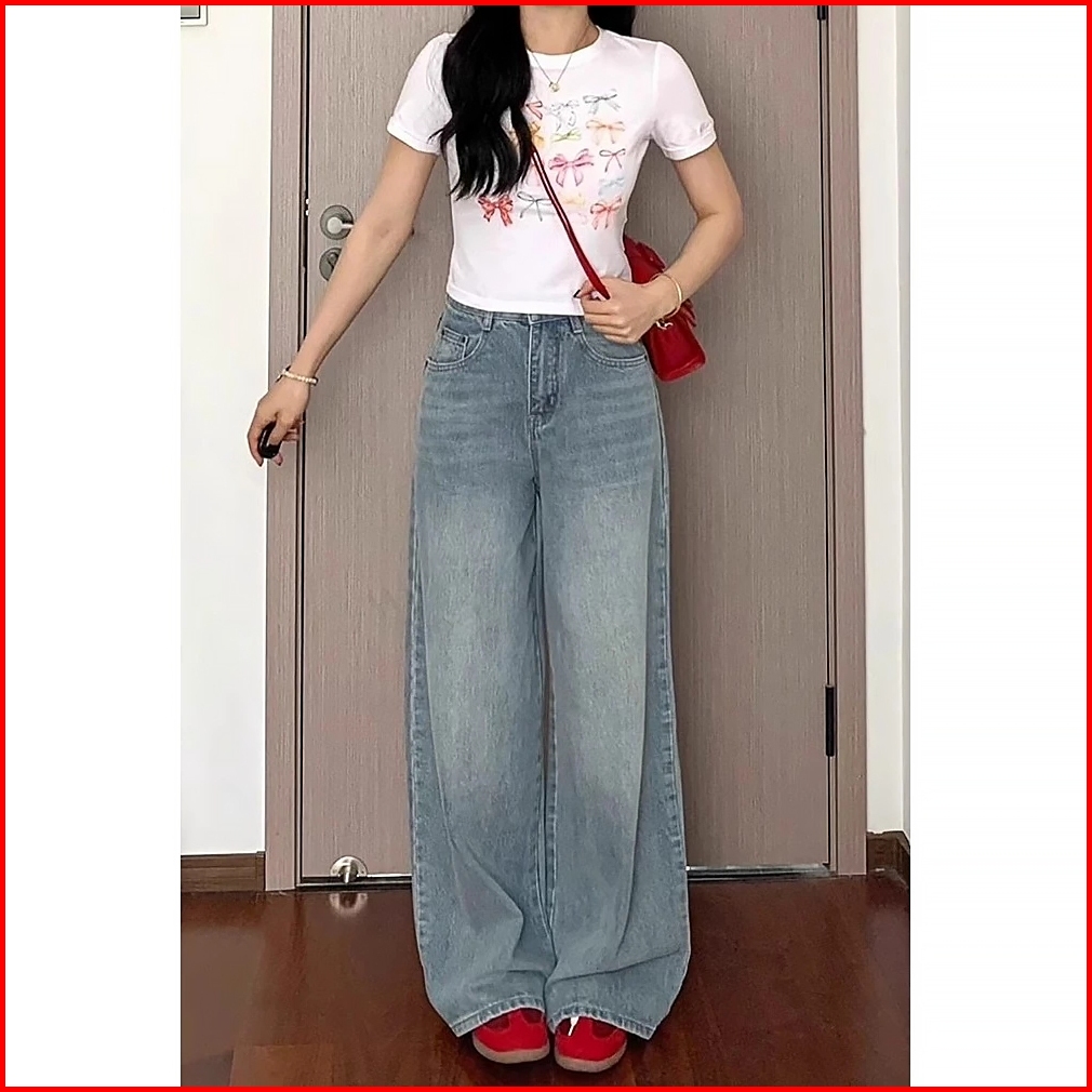 Keygirl Jeans Celana Jeans Terbaru Kulot Korea Biru Muda Pinggang Tinggi--baggy Jeans -baggy Baggy