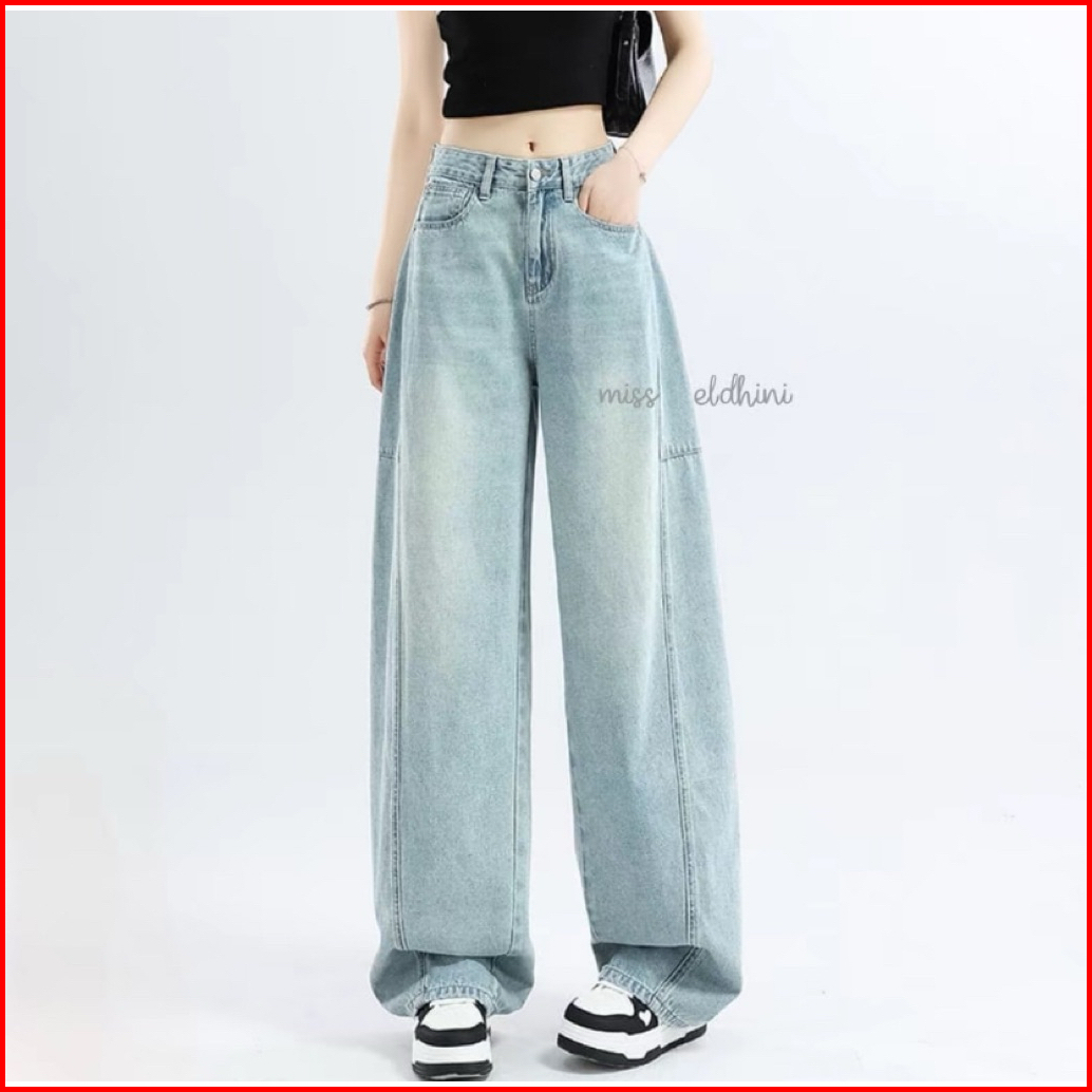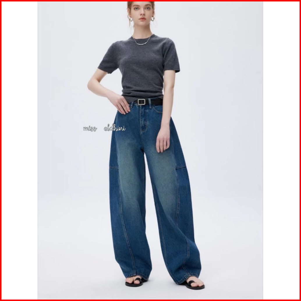 Barrel Jeans Baggy Curve Jeans Barrel Leg Jeans Baggy Pants Barel Raw Denim Wanita Outfit Gombrong Wide Jins Celana Panj