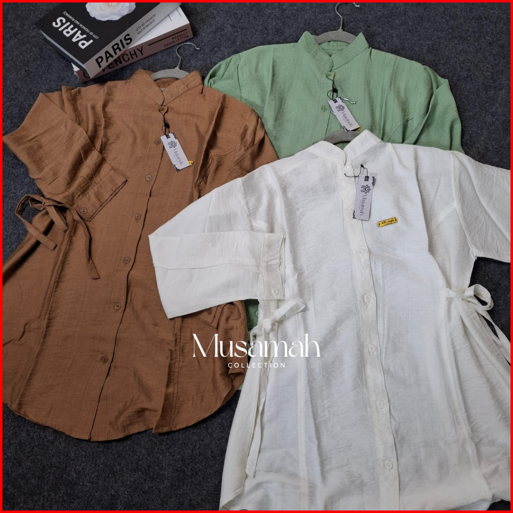 Kemeja Basic Wanita Bahan Polo Linen Lengan Panjang Premium Kekinian Shirt Kuliah Kerja Oversize