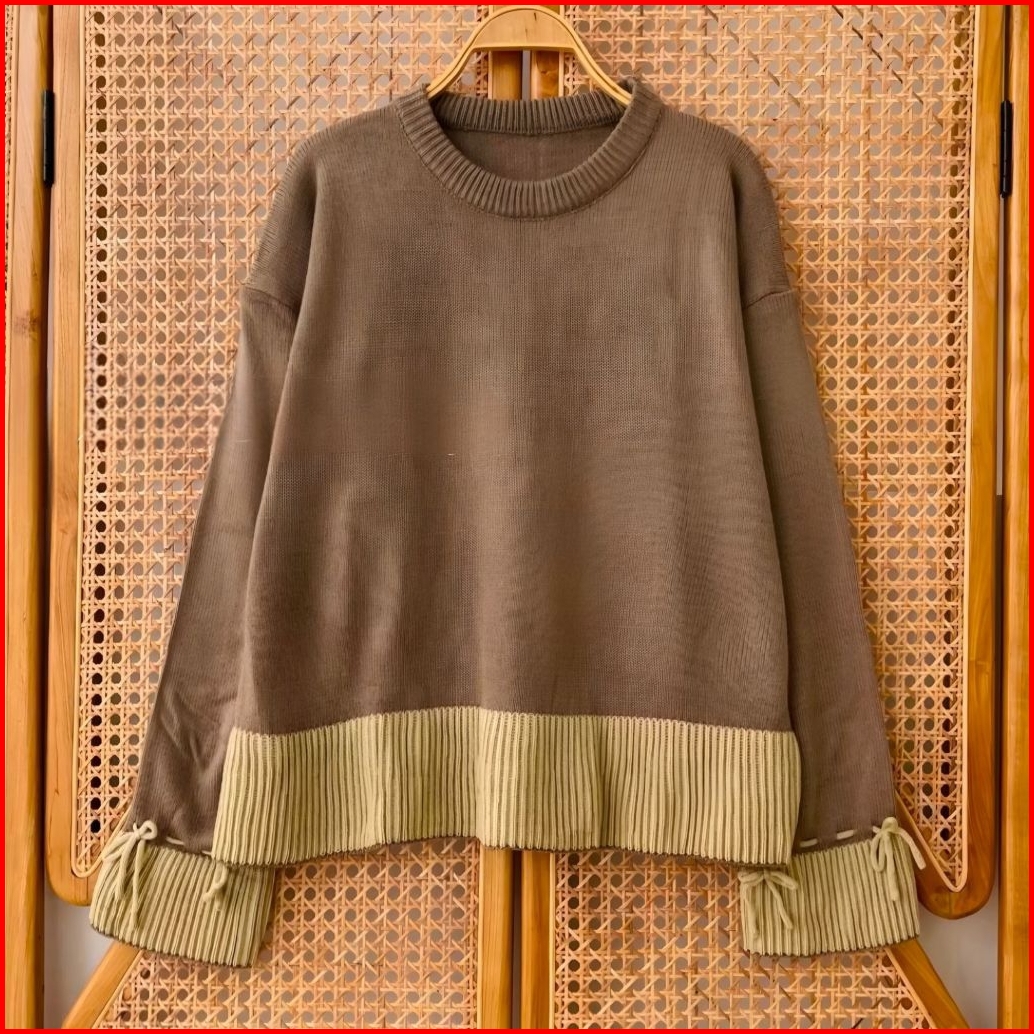 Lailla Blouse Atasan - Sweater Knit Rajut Wanita Motif Lengan Pita Talikur Top Blouse Atasan Seweater Crop Rajut Wanita