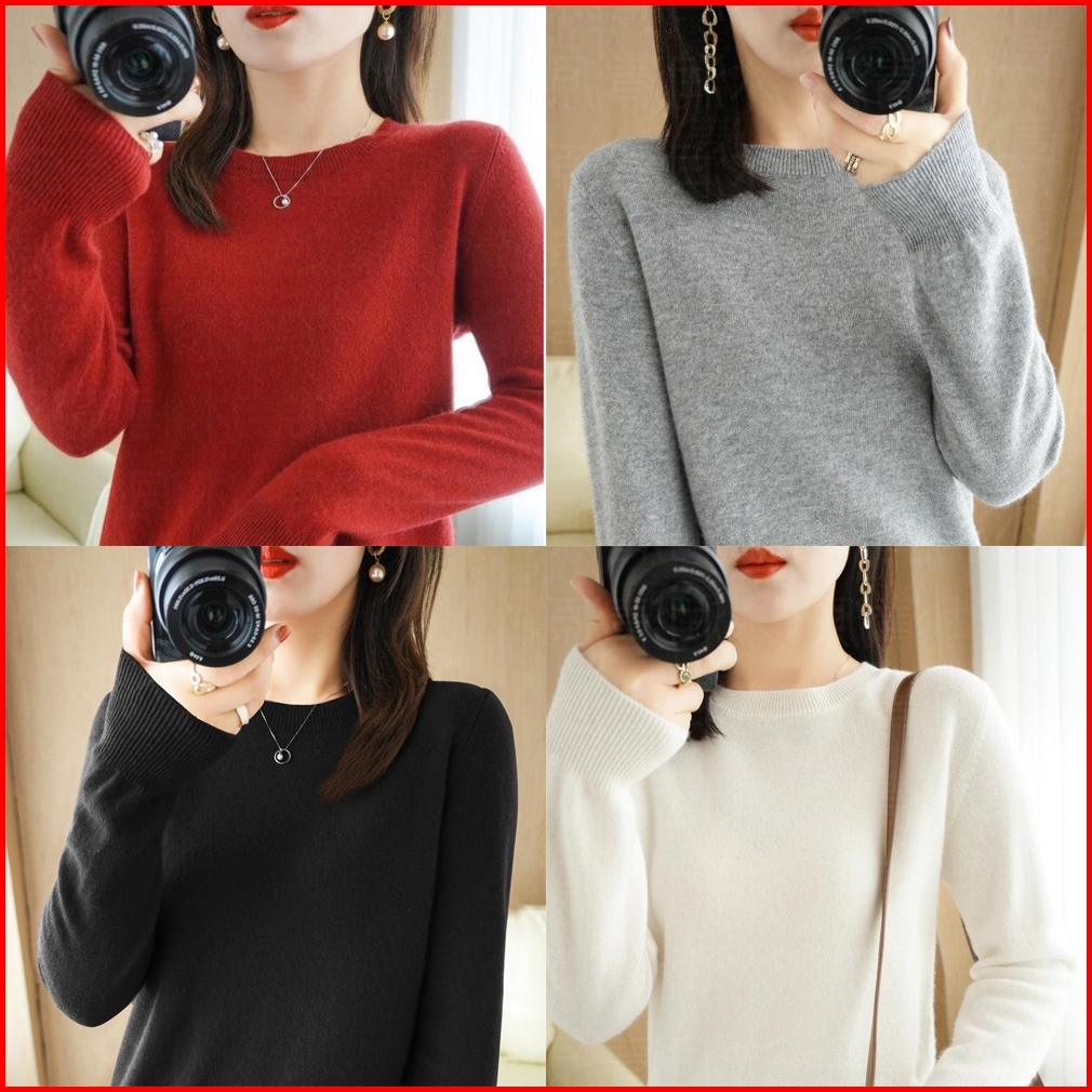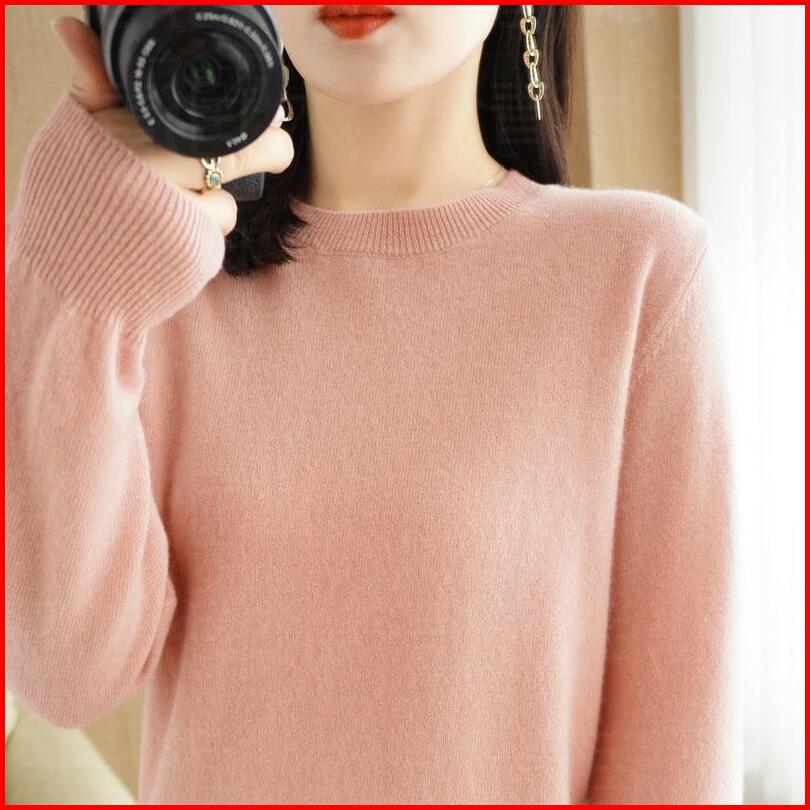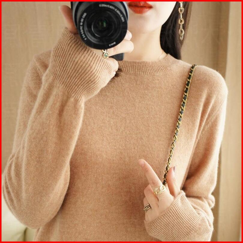 Sweater Atasan Pastel Wanita Semi-rajut Lengan Panjang