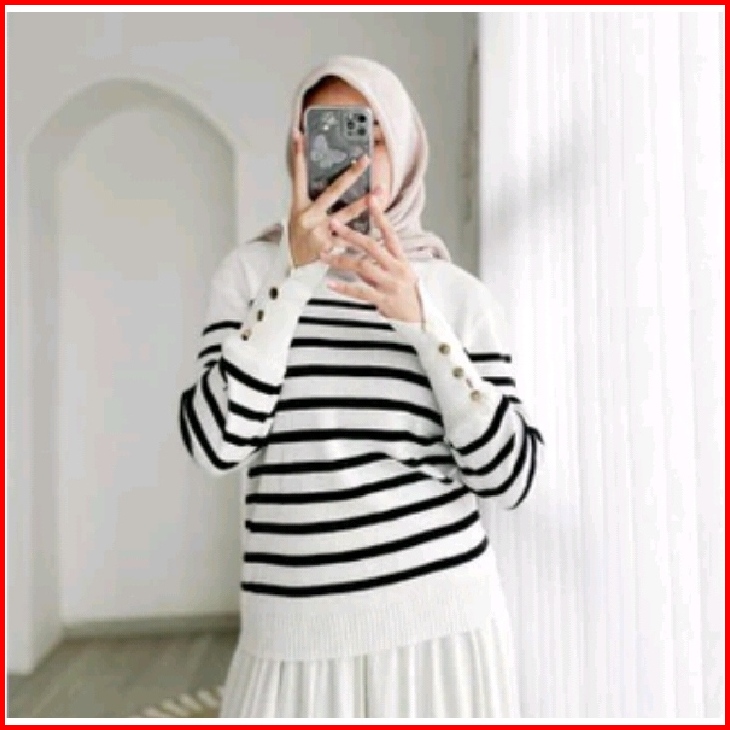 Silvia Knitwear Stripe Tops Oversize Outher Sweater Rajut Wanita