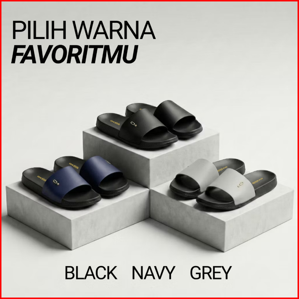 Titik - Sandal Slop Pria Polos Anti Licin Buat Wudhu Rumah - Sendal Karet Slide Cowok Harian Size 36 - 44 Destiny