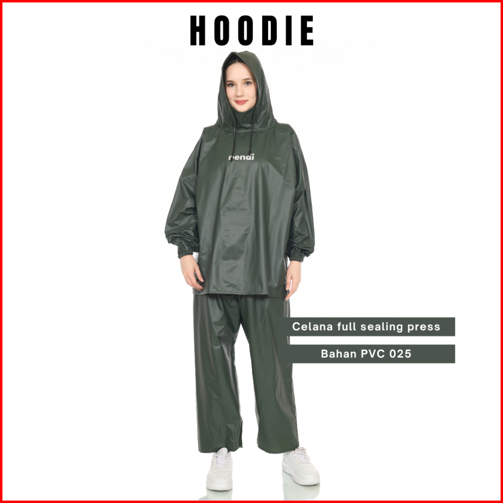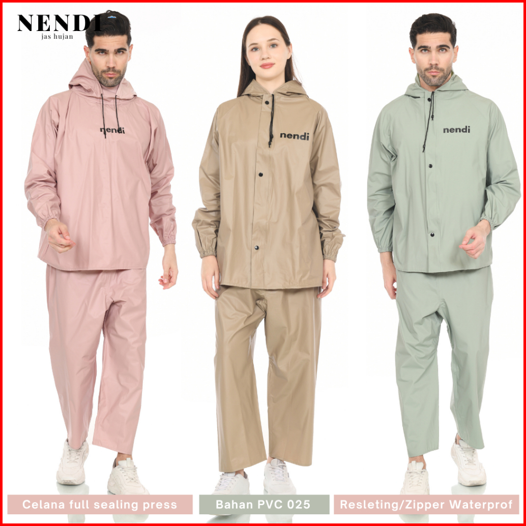 Jas Hujan Nendi Bahan Pvc Tebal Setelan Jaket Celana Dan Hoodie Pria Dan Wanita Lentur Tebal