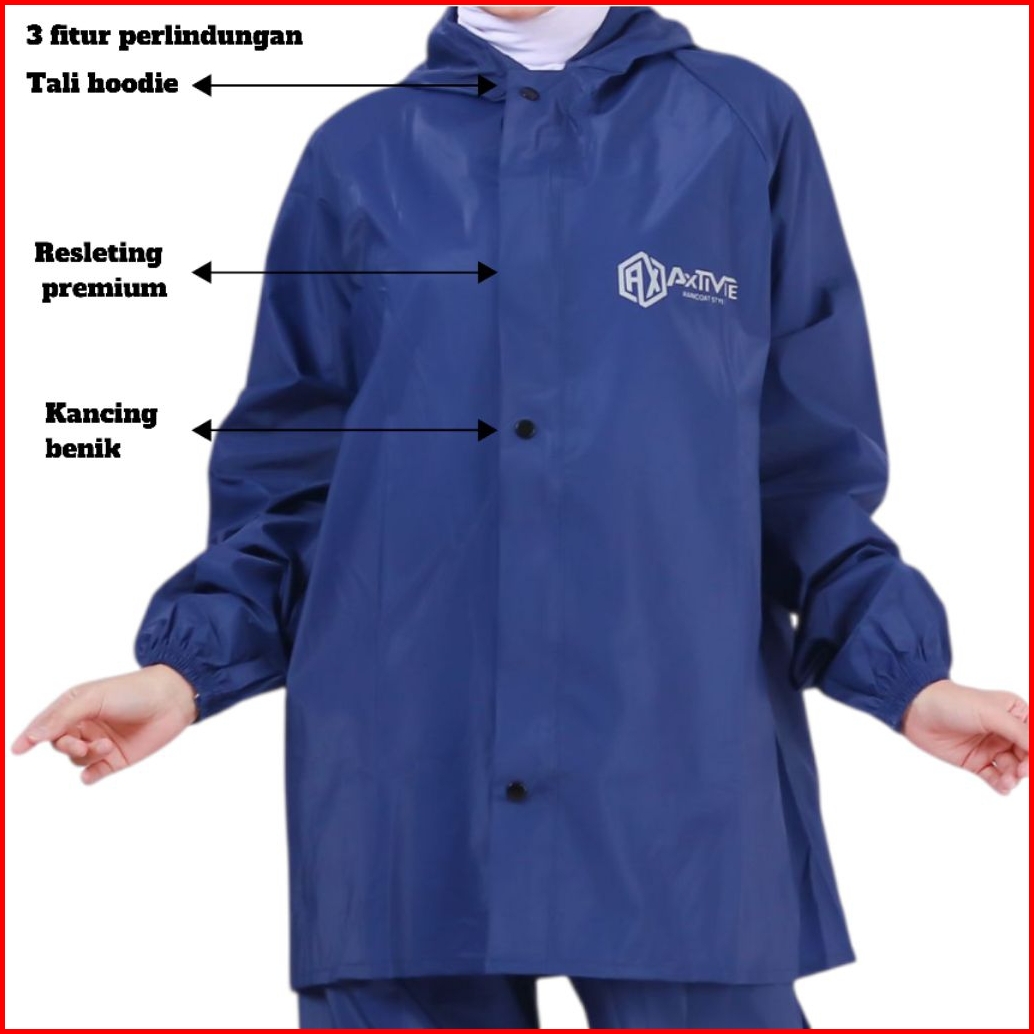 Jas Hujan Pria Wanita Bahan Tebal Ringan Original Axtivie Anti Rembes