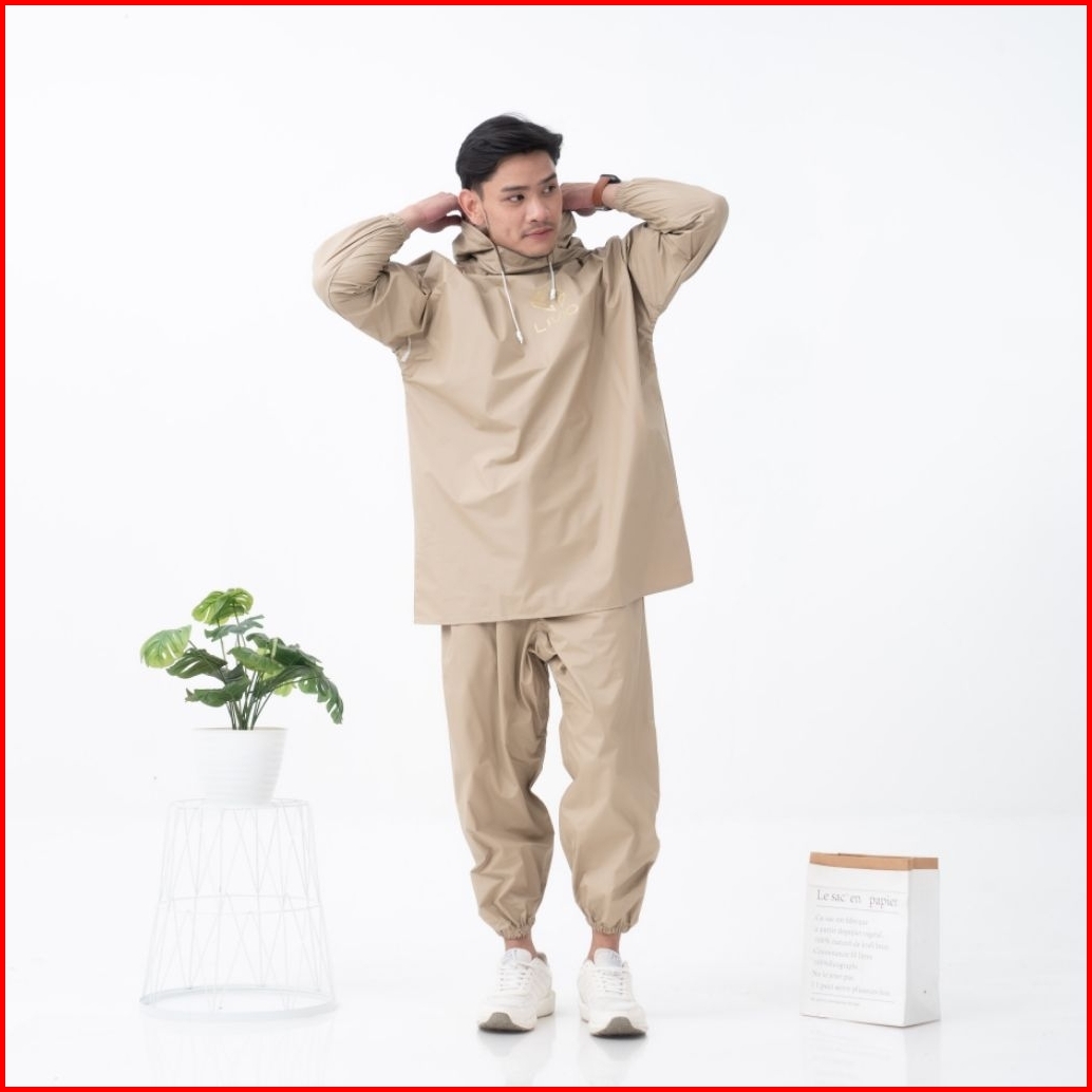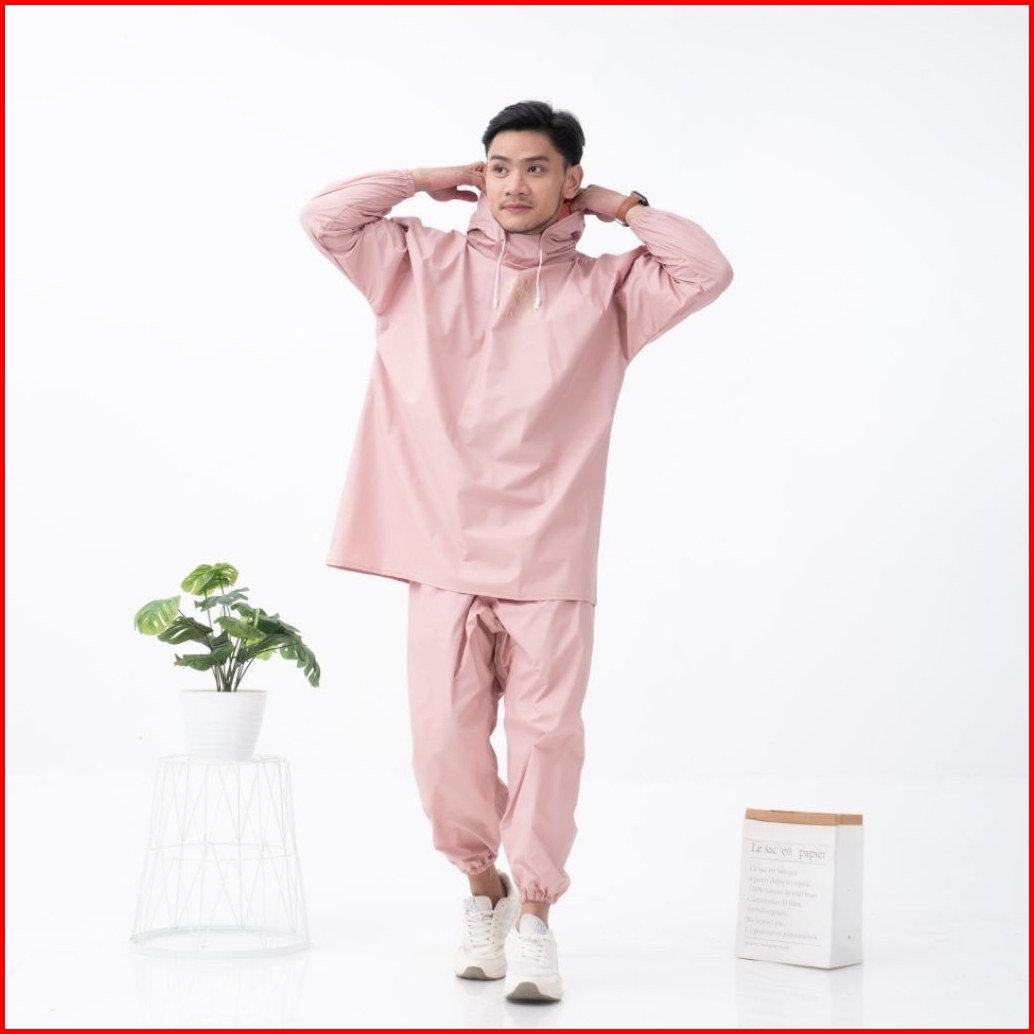 Livio Jas Hujan Raincoat Setelan Pria Cowok Dewas Model Hoodie Jogger Full Sealing Press Bahan Pvc 0 25 Tebal Elastis An