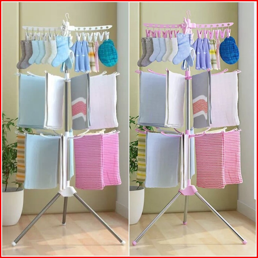 Jemuran Menara Lipat Jemuran Pakaian Bayi 3 Tingkat Serbaguna