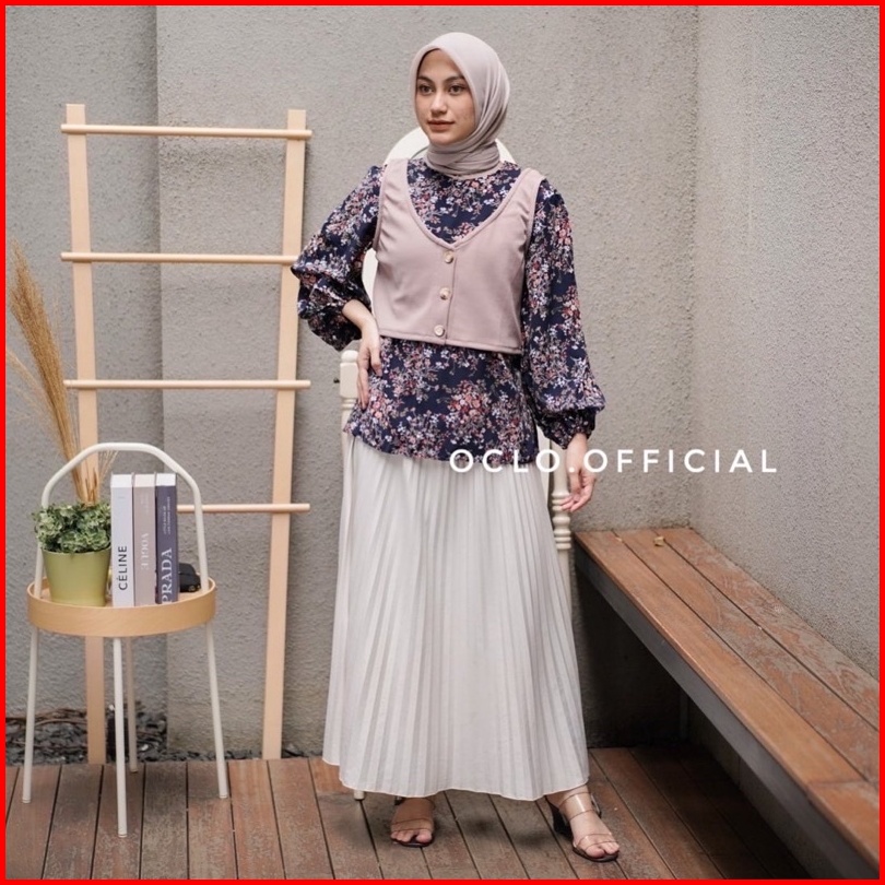 Oclo Ayesha Blouse Vest Basic Casual Atasan Wanita Rompi Rajut Lengan Panjang Ocl00113