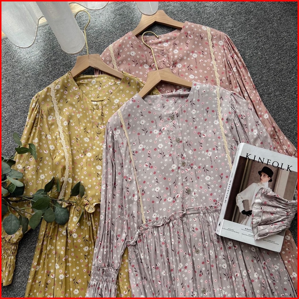 Oclo Maznaya Dress Pakaian Wanita Motif Bunga Lace Renda Vintage Rayon Ocl01107