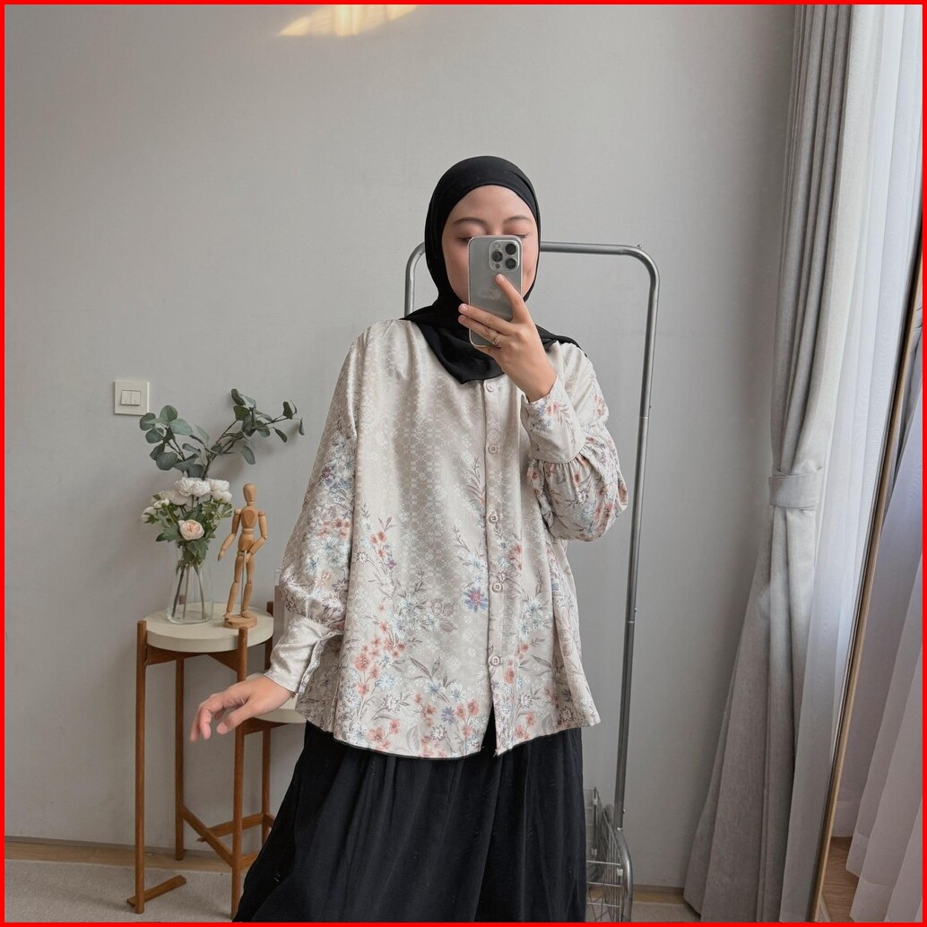 Oclo Ovaly Shirt Casual Basic Motif Atasan Kemeja Wanita Rayon Viscose Motif Bunga Lengan Panjang Ocl02930