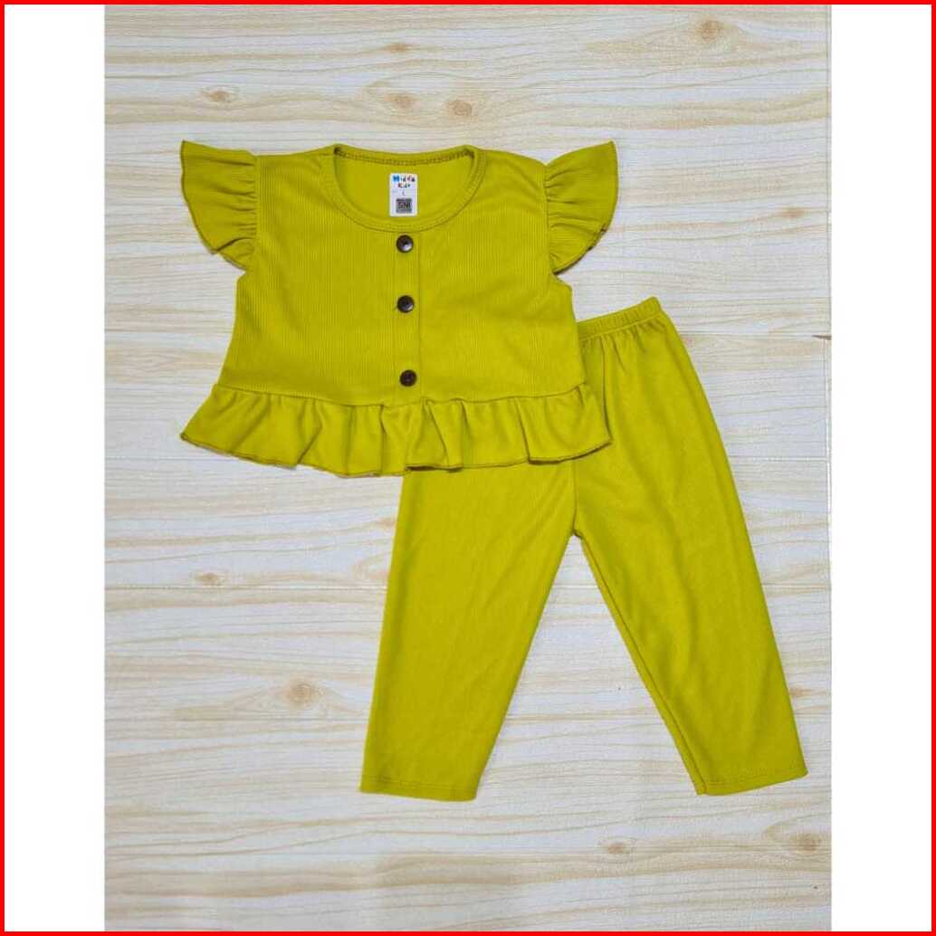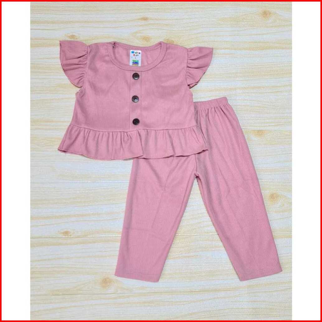 Setelan Anak 0-3 Tahun Model Ruffle Kancing Bahan Knit Salur Baju Baby Leticia