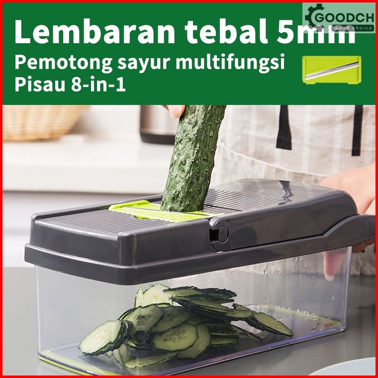 Goodch Alat Pemotong Sayur Cepat Multifungsi Dadu Iris Lobak Kentang Bawang Dengan Kotak Penampung Otomatis Stainless St
