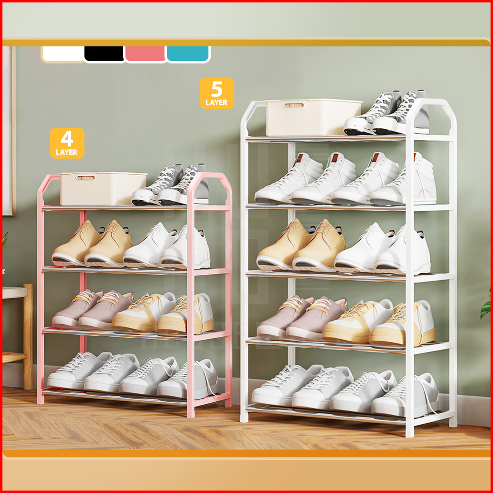 Rak Sepatu Stainless Steel Portable Tempat Sepatu Sandal Minimalis 4 Susun Dan 5 Susun Hugo