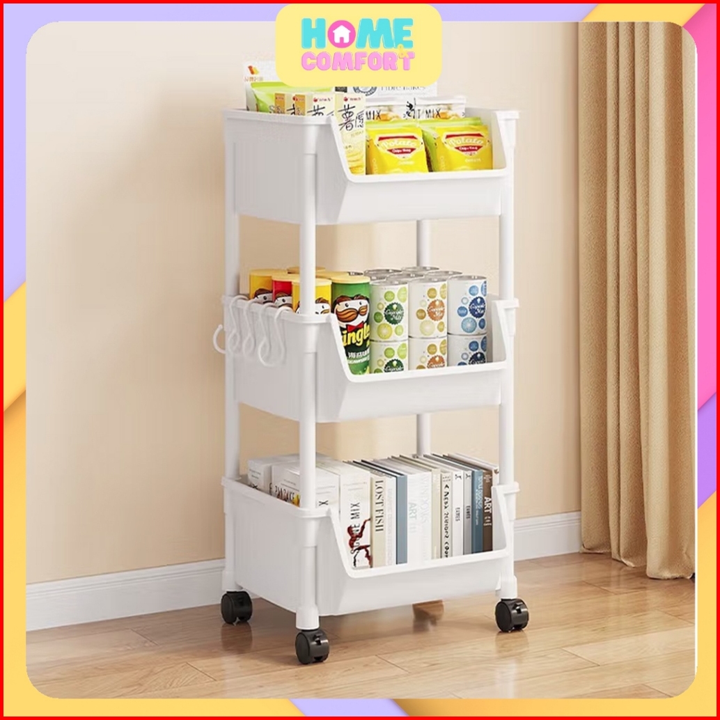 Homecomfort Rak Susun Serbaguna Plastik Portabel Rak Dorong Plastik Rak Penyimpanan Buku Rak Dapur