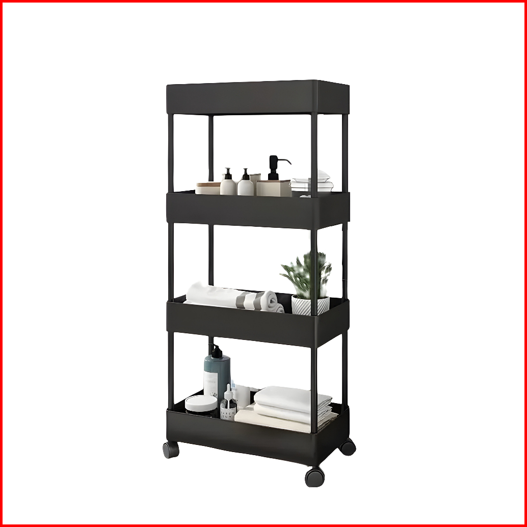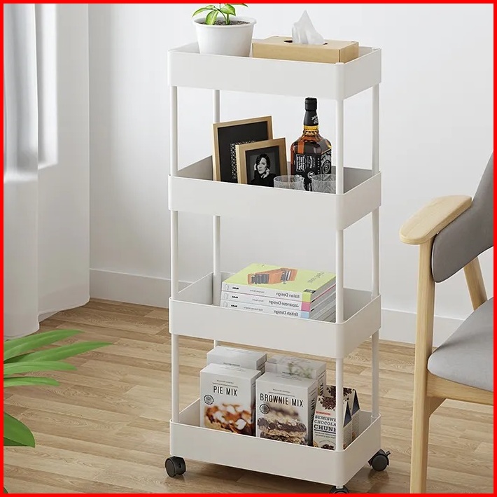 Rak Susun Serbaguna Rak Dapur Rak Kamar Mandi 4 Susun Plastik Dengan Roda Troli