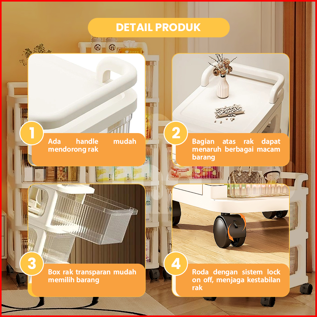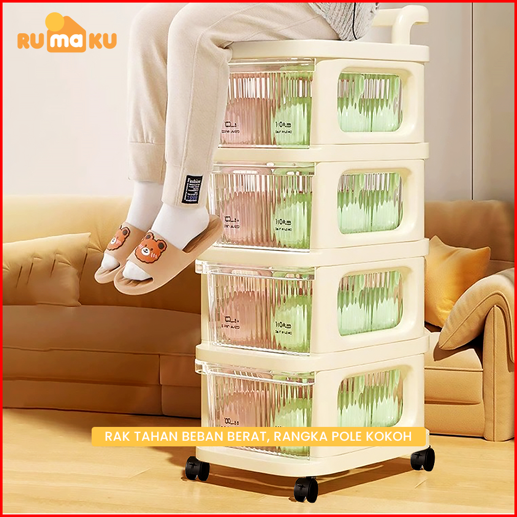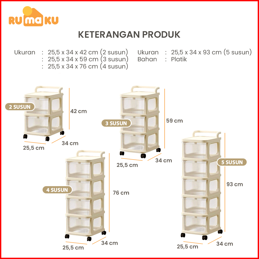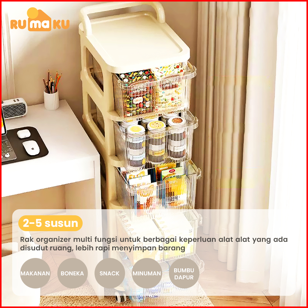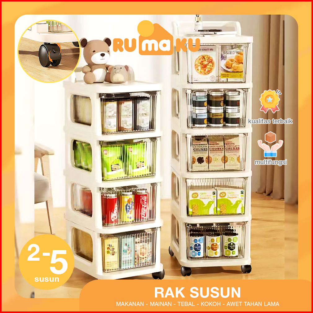 Rumaku Rak Dapur Susun Serbaguna 5 Tingkat Roda Troli Tutup Anti Debu Minimalis Berkualitas