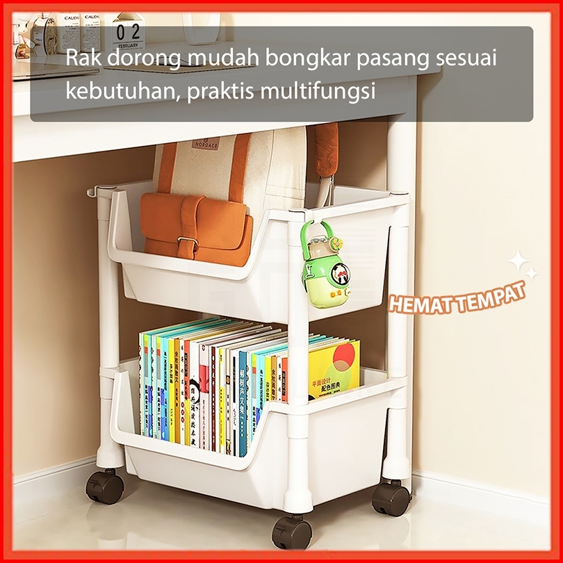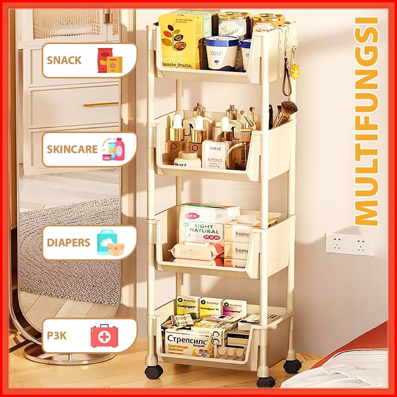 Hoptech - Rak Dorong Serbaguna Susun Troli Dapur Toilet Plastik Dengan Roda Praktis