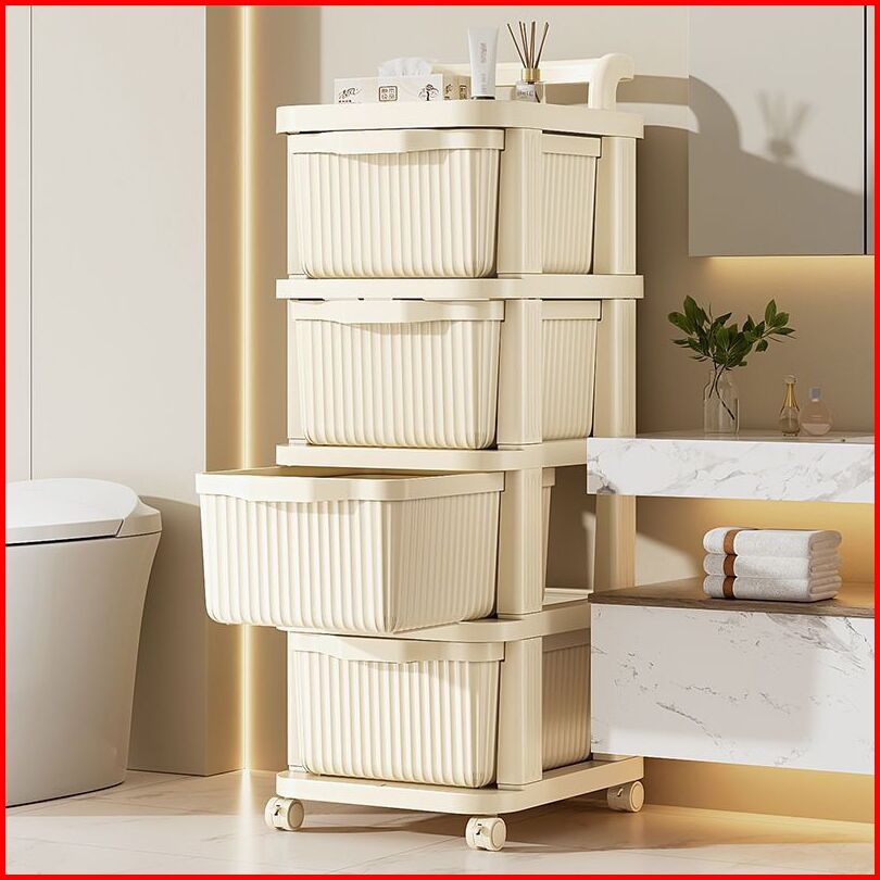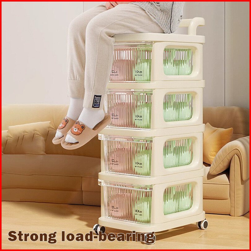 Rak Troli Susun Serbaguna Dengan Roda - Penyimpanan Plastik Aesthetic Untuk Kamar Dapur Atau Ruang Kerja Dilengkapi Laci