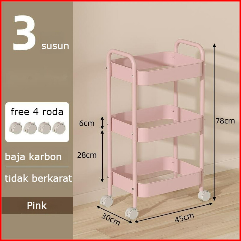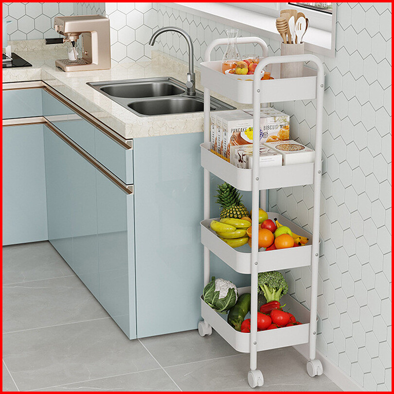 Rak Troli Dengan Roda Rak Penyimpanan Rak Camilan Multi-lapis Rak Penyimpanan Dapur Yang Dapat Dipindahkan