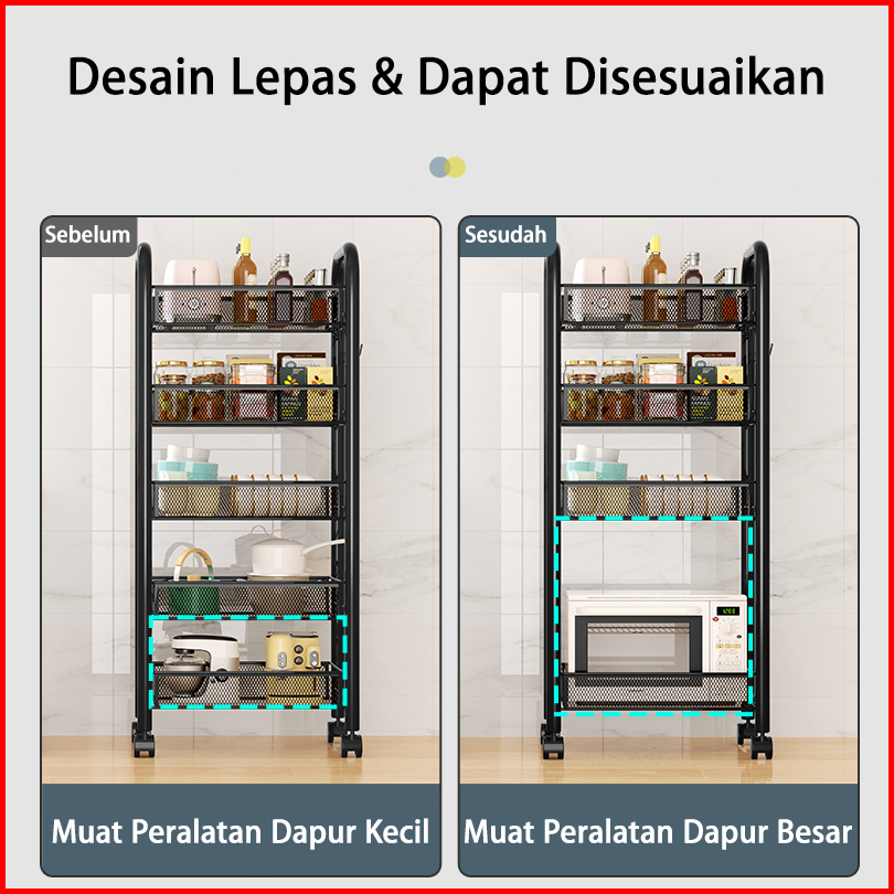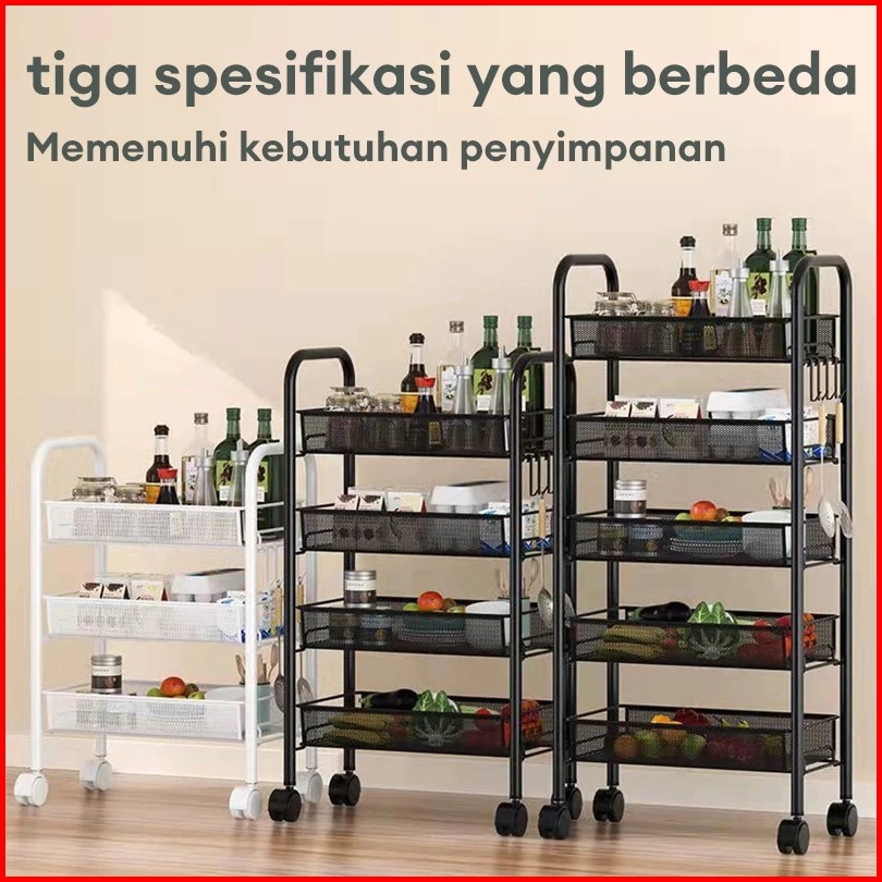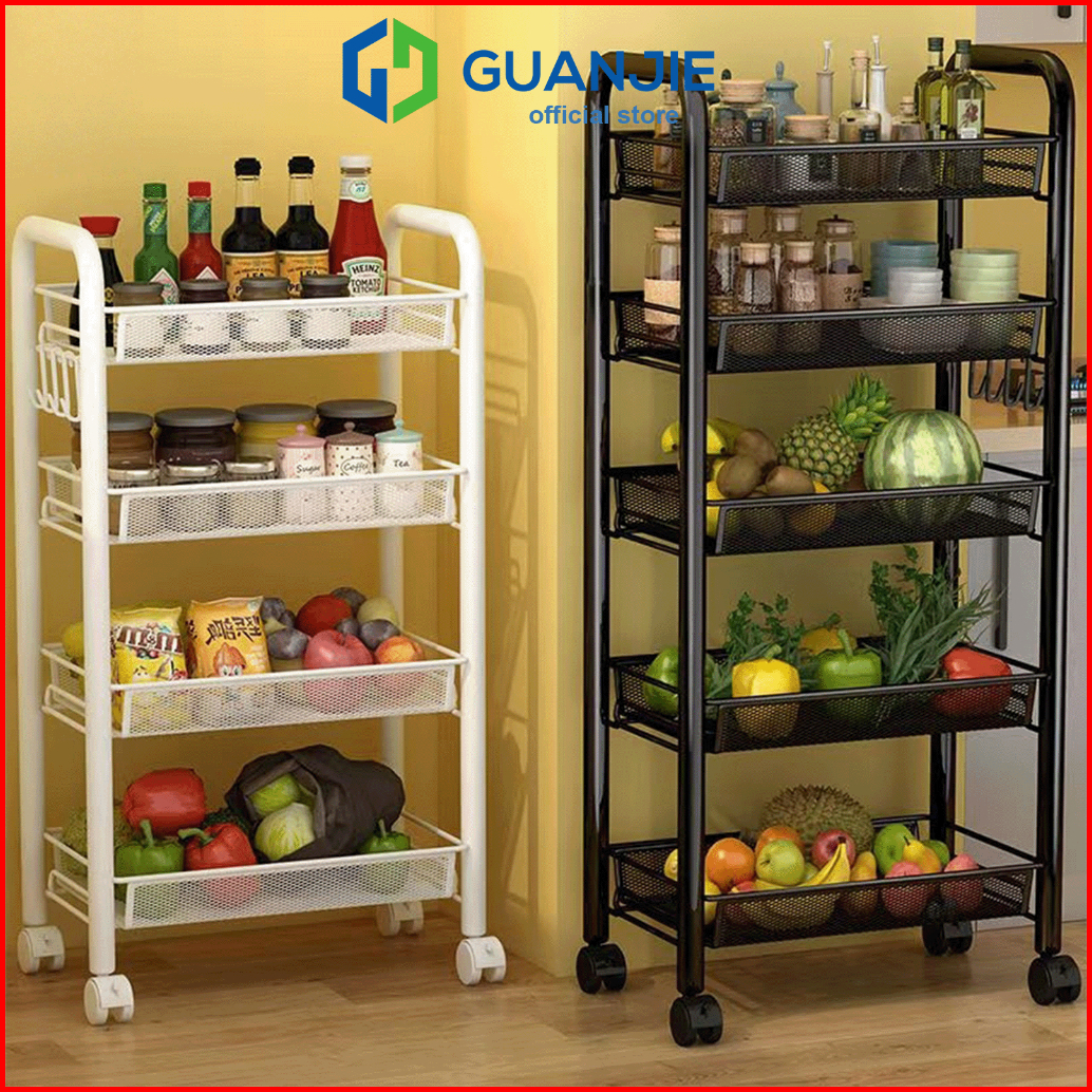 Guanjie - Rak Troli 3 4 5 Susun Rak Lantai Beroda Rak Penyimpanan Serbaguna Rak Salon Rak Dorong Rak Ruang Tamu Dengan R