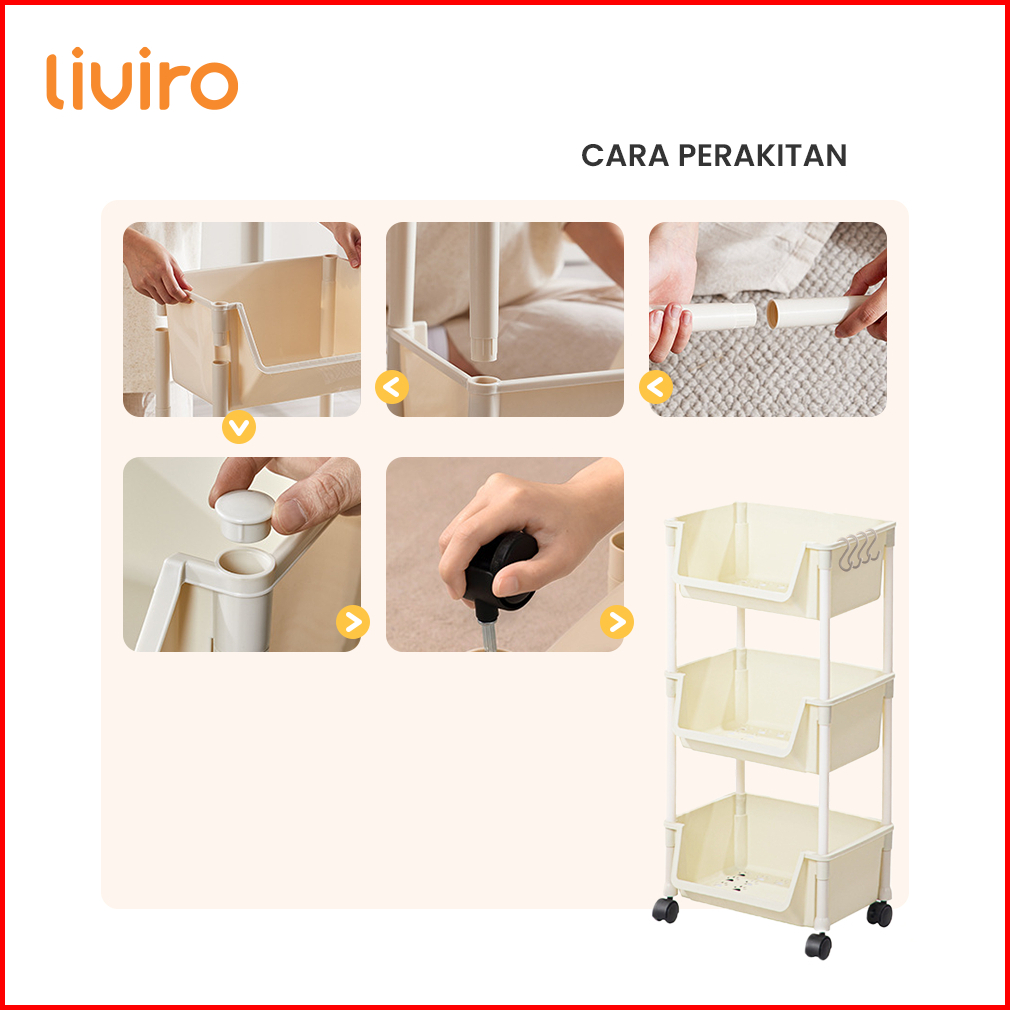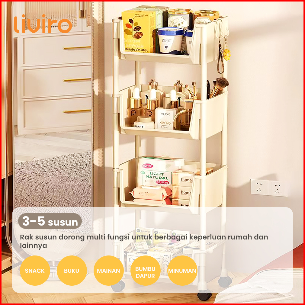 Liviro Rak Troli Aesthetic Roda Dorong 4 Susun 5 Tingkat Penyimpanan Serbaguna Kokoh