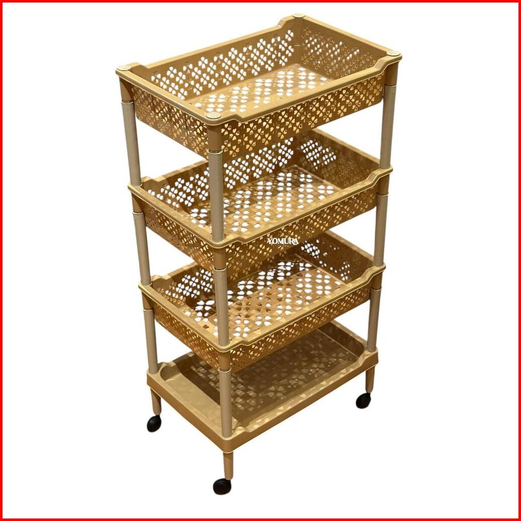 Yomura Rak Roda Serbaguna 4 Susun Jumbo Tingkat Scandinavian Rak Tingkat Rak Dapur Rak Tembok Troli Serbaguna Rak Bumbu