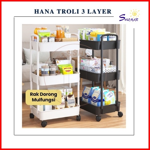 Rak Troli 3 Susun Serbaguna Rak Dapur Rak Salon Rak Kamar Mandi Dengan Roda Dan Pegangan Tempat Penyimpanan