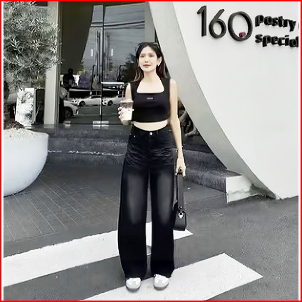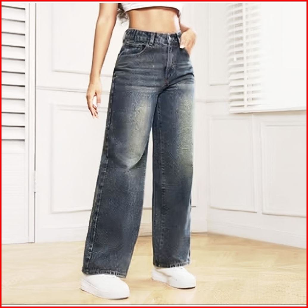 Skena Baggy Jeans Wanita Celana Kulot Jeans Loosepant Gombrong Higwaist Kekinian Bahan Non Strit.