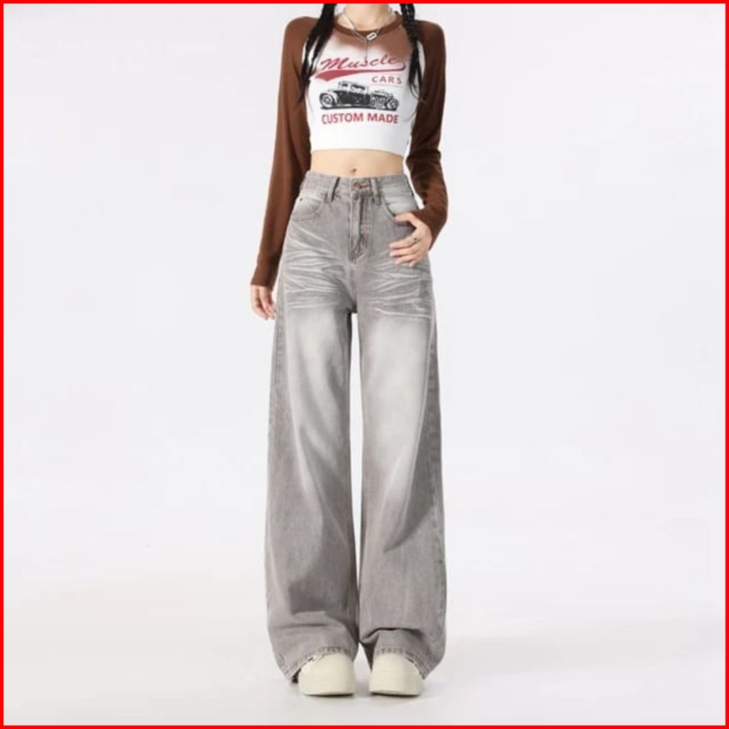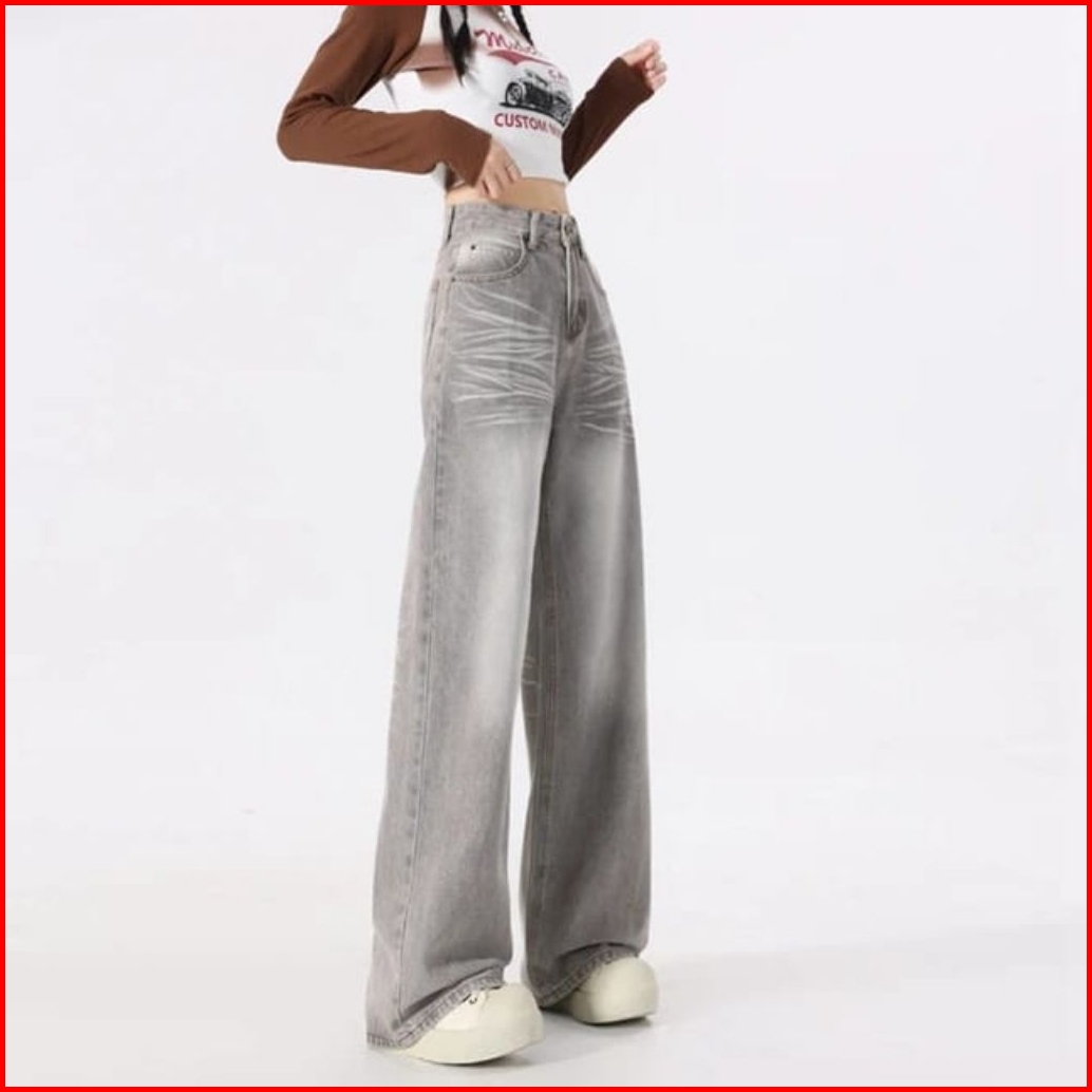 Highweist Baggy Loose Jeans Wanita Korean Style Gombran Wisker