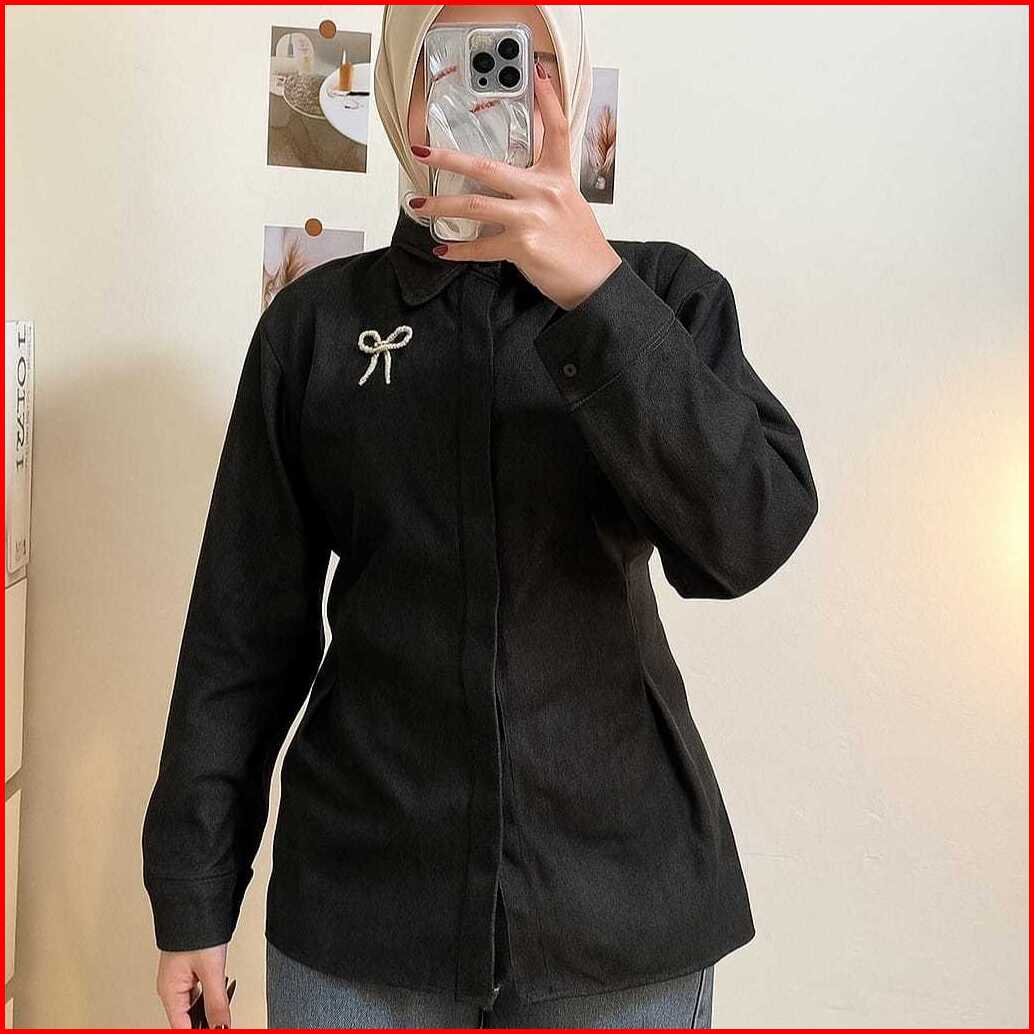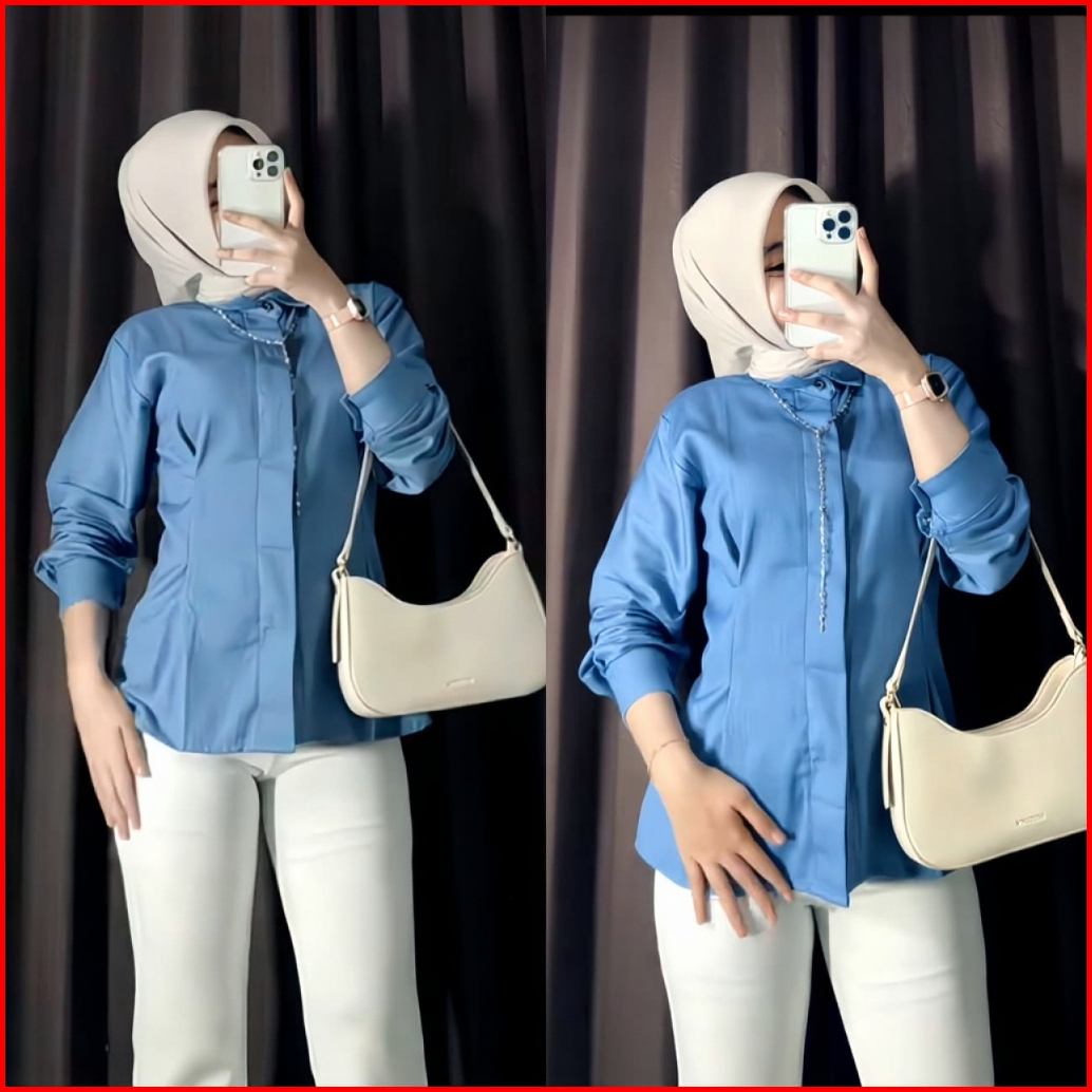 Kemeja Alisa Jeans - Kemeja Jeans - Atasan Wanita Denim - Kemeja Basic Lengan Panjang - Kemeja Wanita