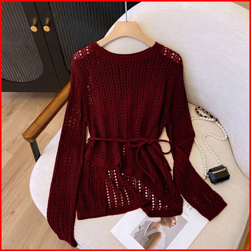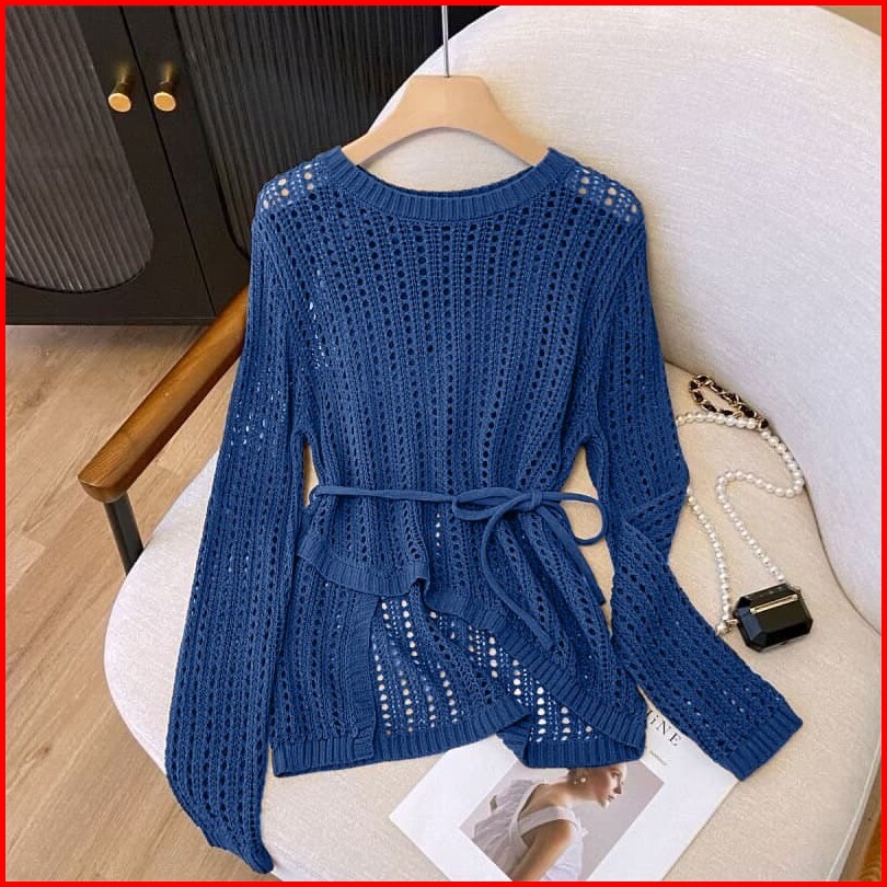 Rajut Berongga Wanita Lengan Panjang Premium Terbaru-knitwear Blouse Korean-sweater Rajut Jaring