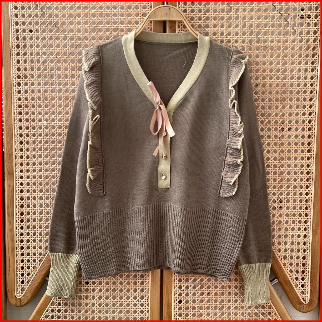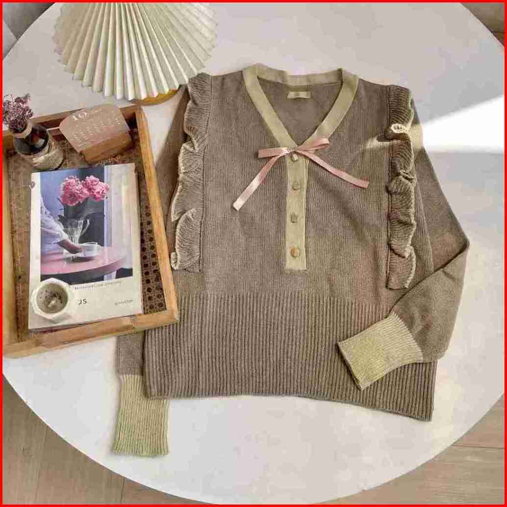Helena Top Knits Atasan Sweater Rajut Kancing Pita Wanita