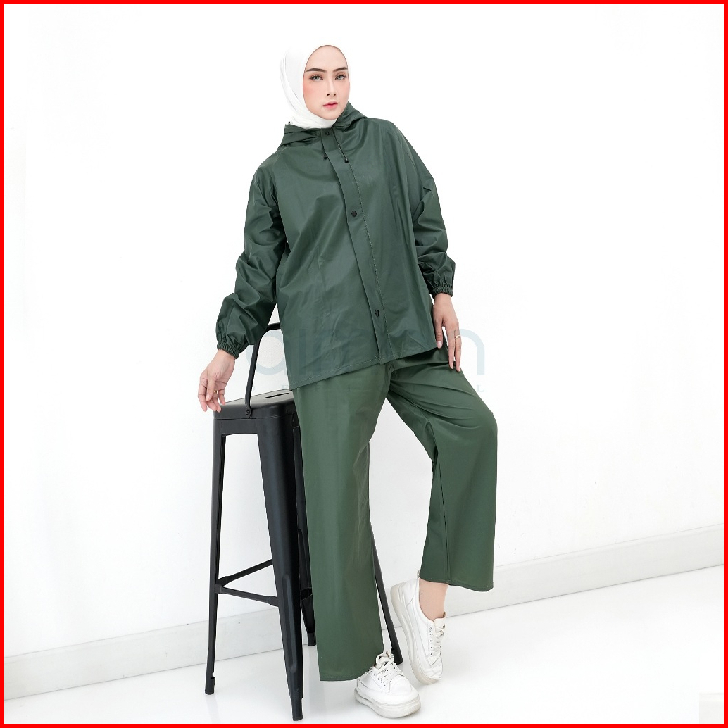 Aimon Jas Hujan Pria Wanita Tebal Warna Pastel Setelan Jaket Celana