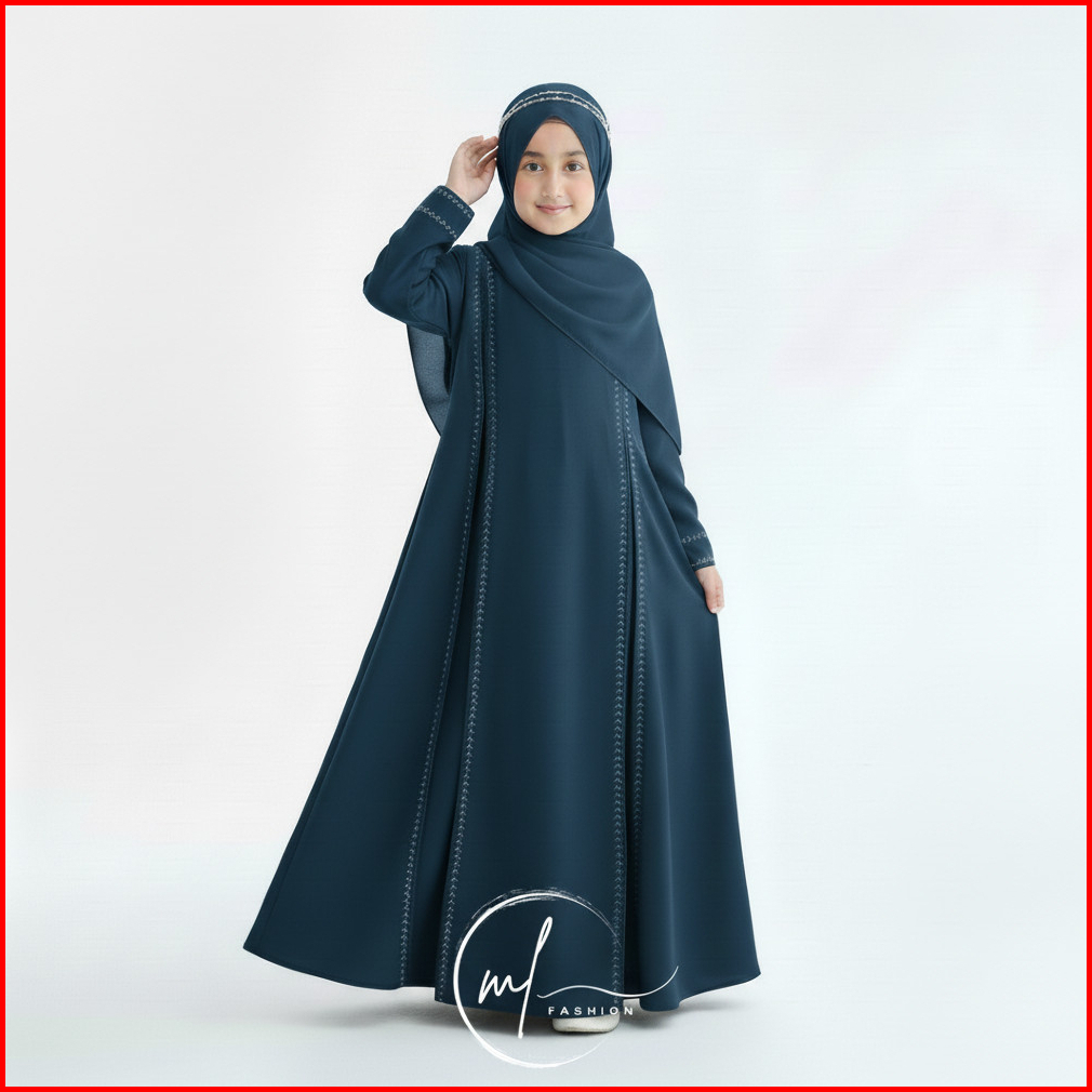 Gamis Abaya Anti Uv Dress Muslim Anak Perempuan Set Hijab Pashmina